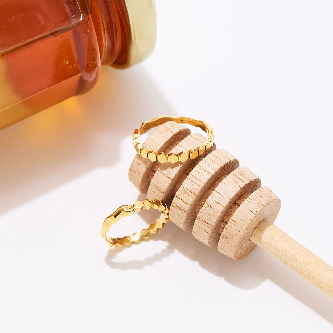 Let the bee be an assistant of your happy life. A ring full of Q-pot. unique design. A bee engraved on the back of the ring will bring the love of the two.