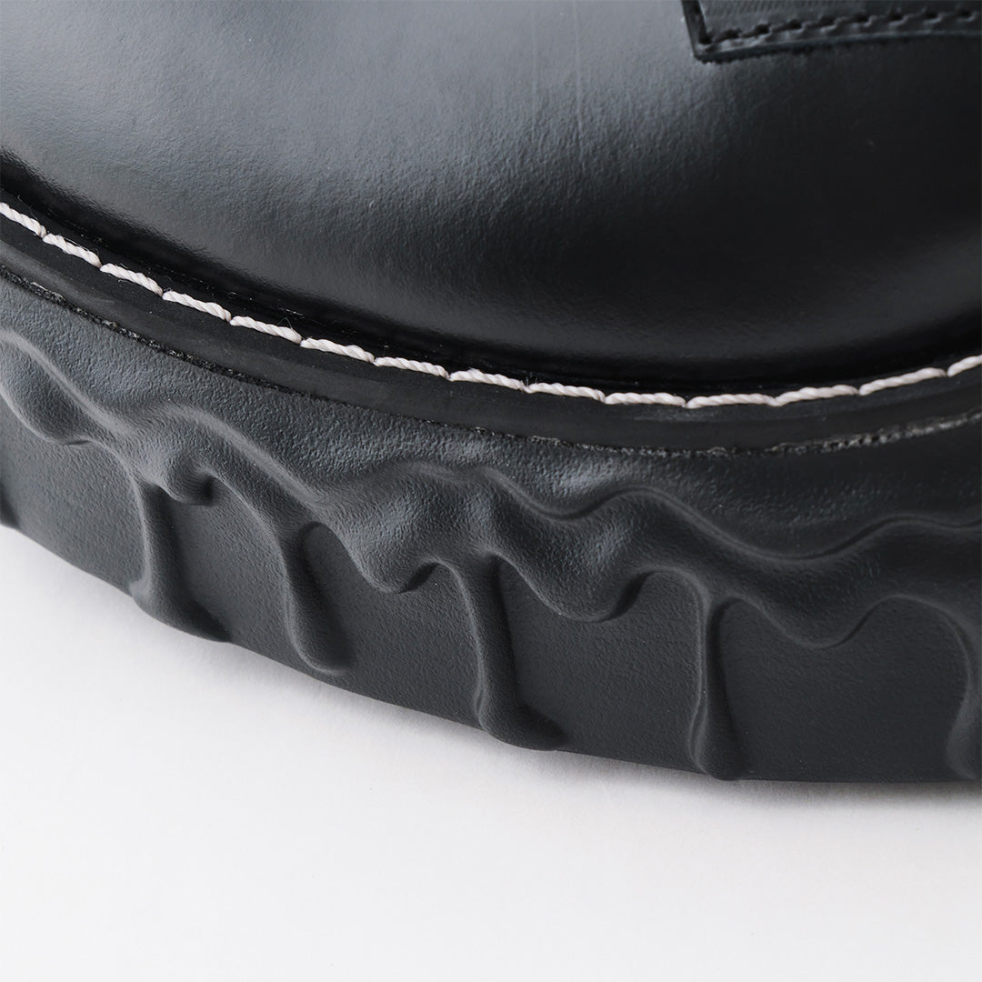 The rounded and voluminous upper has a glossy finish like chocolate, made of corrected-grain leather (cowhide) with an elegant luster and fine color. The ribbon laces make the boots more gorgeous.