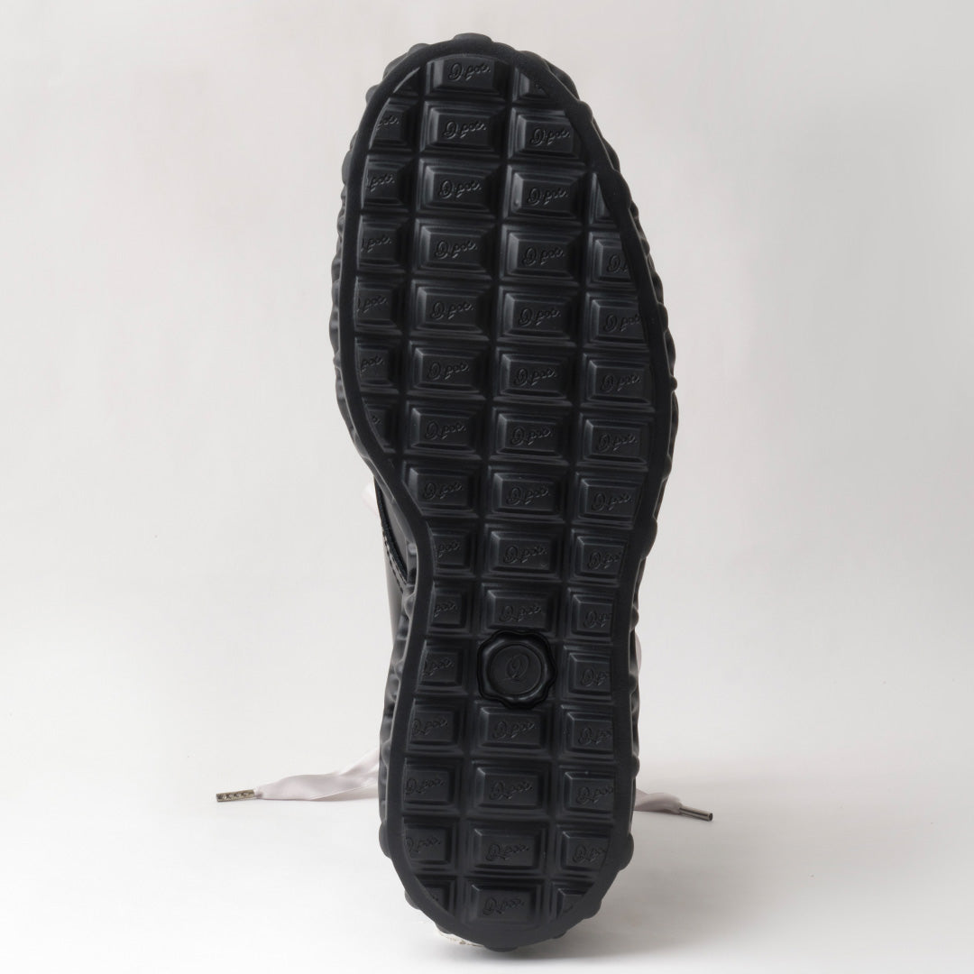 The impactful sole that melts over 3 layers is surprisingly light contrary to the decorative design, showing the designer's thoughts of "walk lightly on the path of life" with an eye-catching design. Highly cushioned and extremely light sole is also one of the charms of Q-pot. SHOES. The bottom of the sole is tablet chocolate designed, after walking, the pieces of chocolate (=PEACE) spread out.