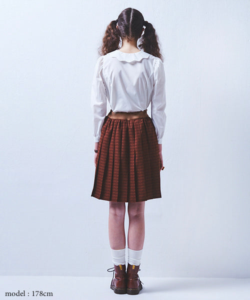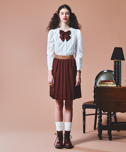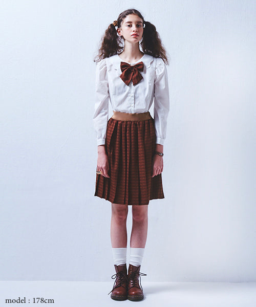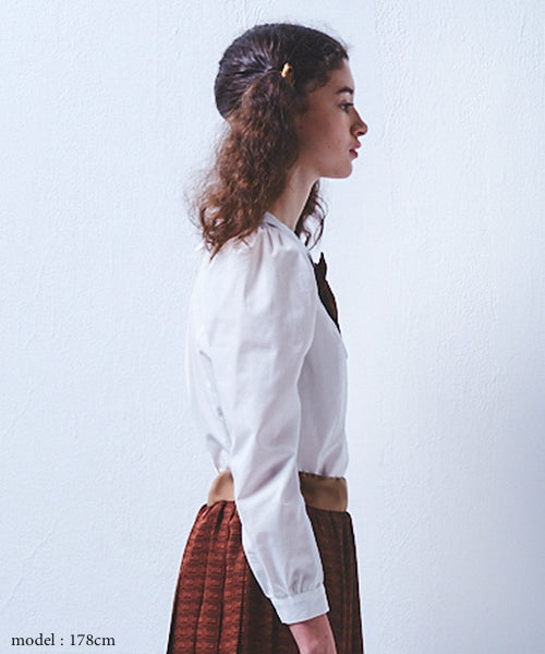 Fashionable blouse casts a spell on your look. You can enjoy various coordinates with it. Sleeve is leg of mutton sleeve and the princess line is like a vintage dress. Q-pot. original chocolate bow is detachable, so you can wear the blouse as simple look.