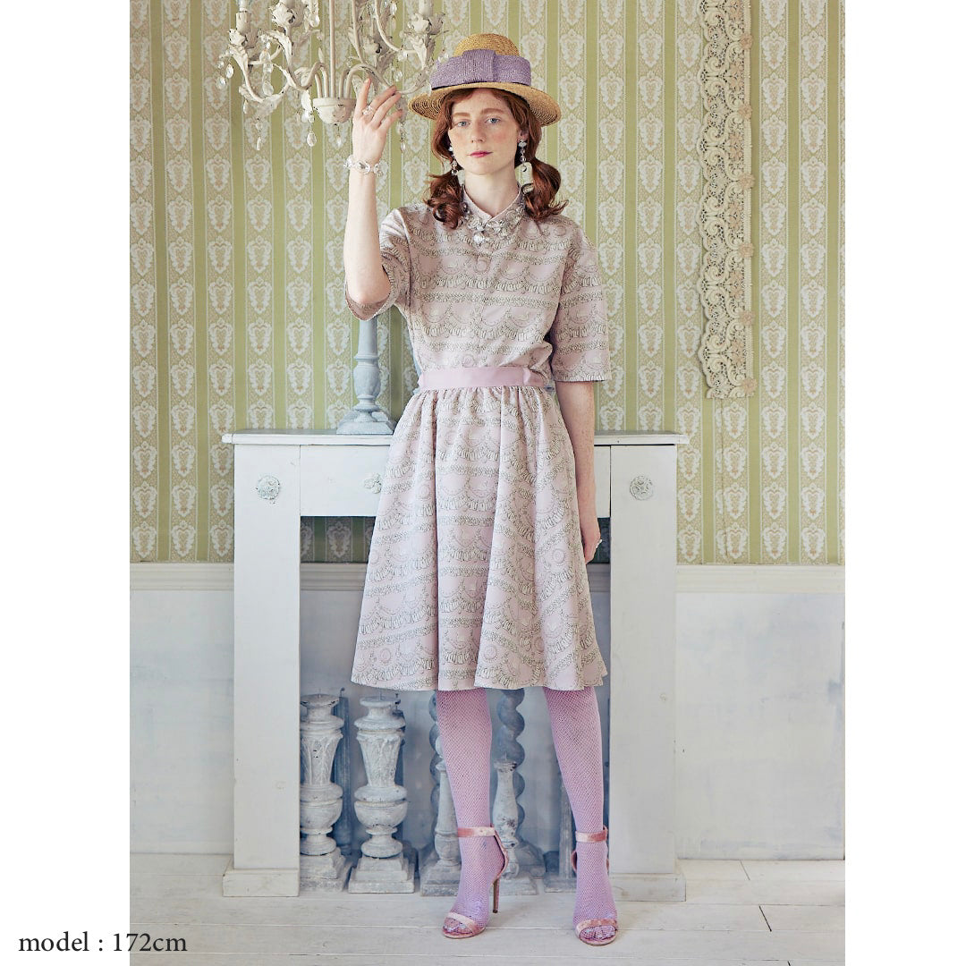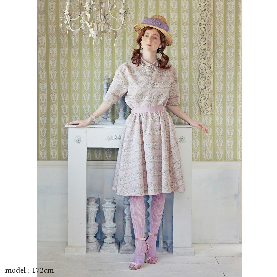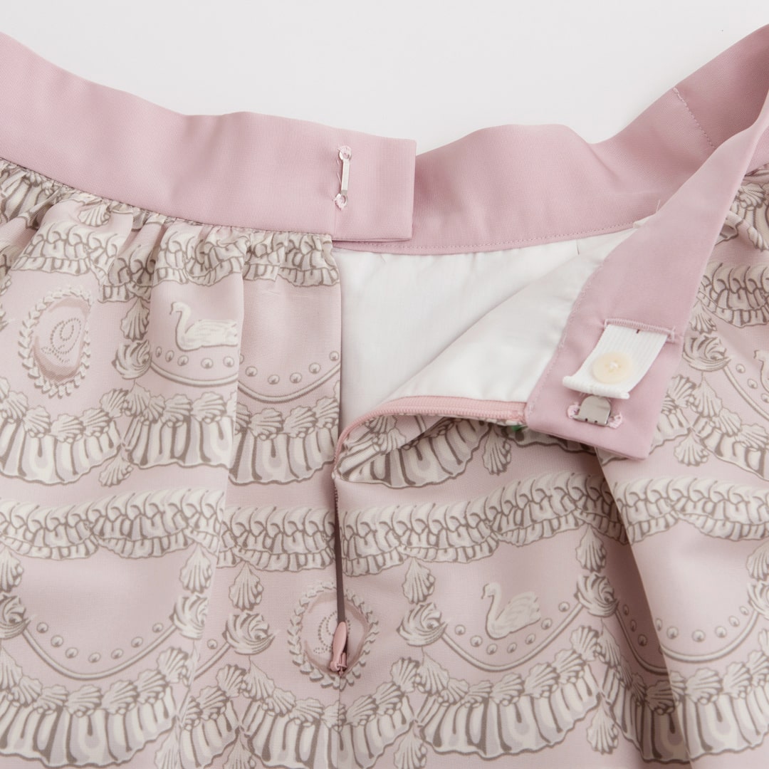 With elegant cream that is layered on top of each other and symbolic swan decorated, the elegant appearance like a sugar craft cake. The A-line form is a beautiful silhouette and the skirt length is not too short and a very elegant, gentle, light and fluffy silhouette. The waist has an adjuster rubber and the size can be adjusted. With the shirts and setups from the same collection, you can enjoy dressing like a dress.