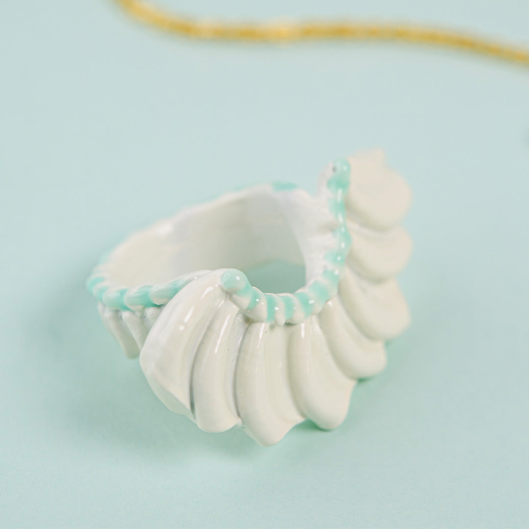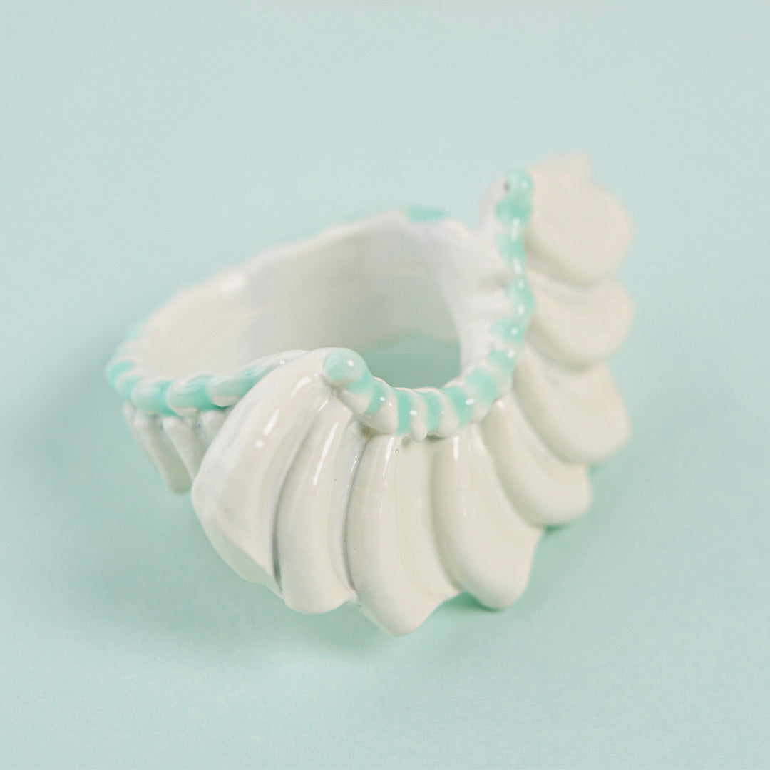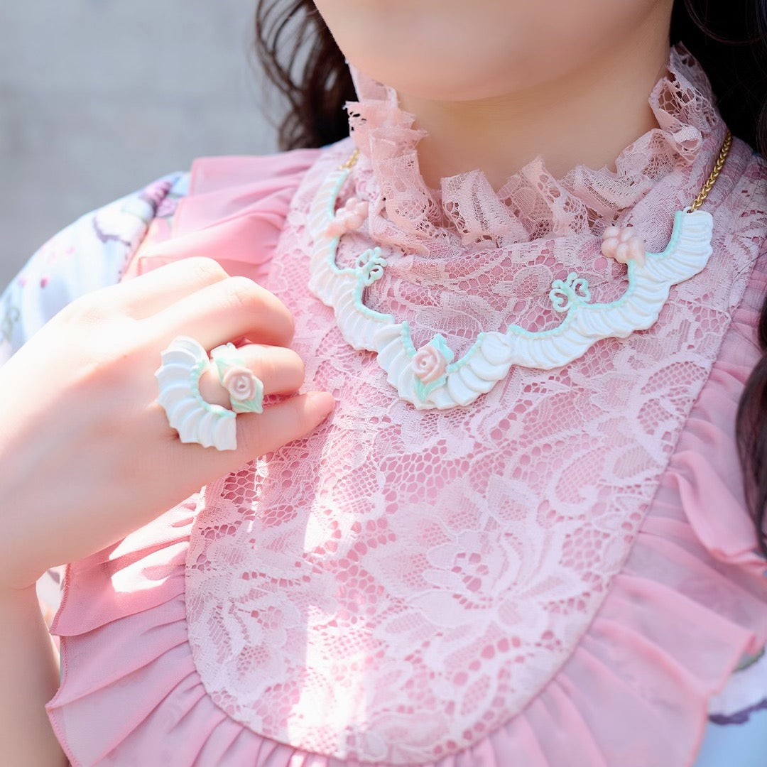 A ring like a light step of waltz curve. The large size will make your finger look gorgeous. You can also layer it with the Rose Cream Ring (sold separately).