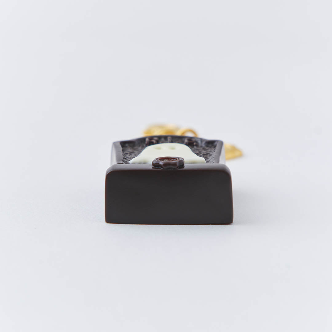 A gravestone-shaped bitter chocolate, delicately illustrated with a ghost in white chocolate, is crafted with exquisite realism—just like a true artisan confection. Made in Japan and carefully finished by craftsmen.