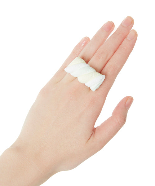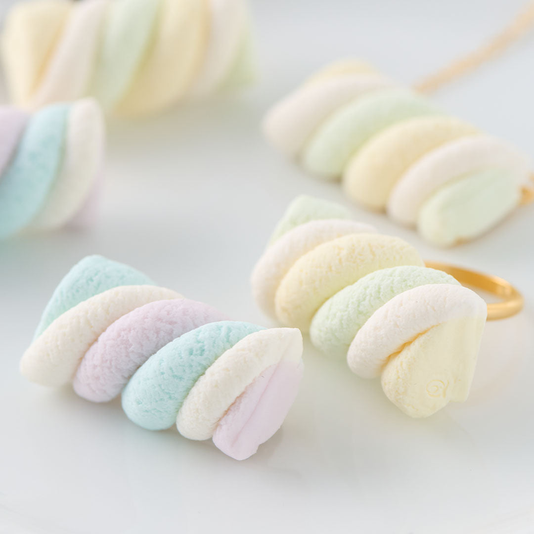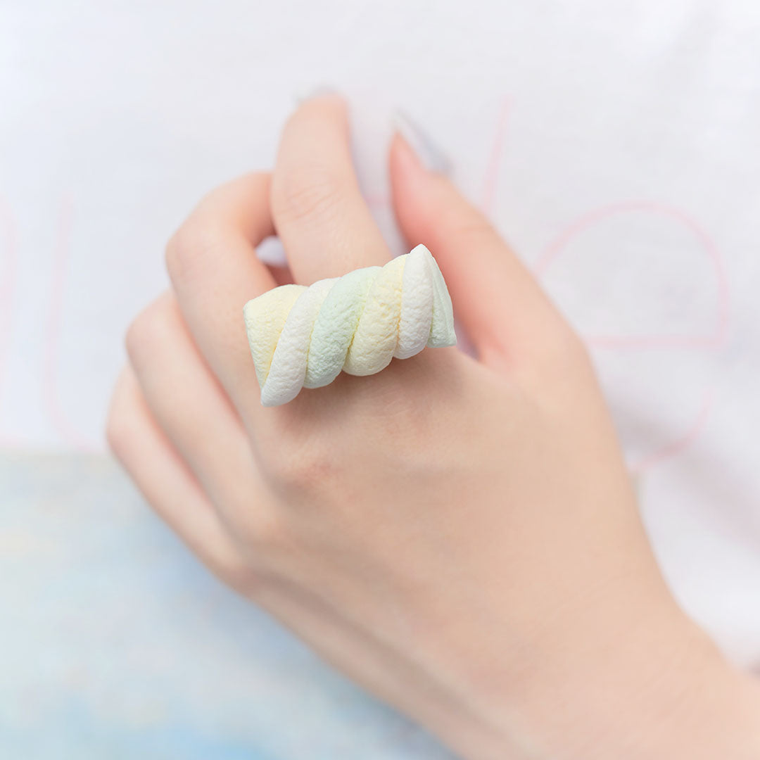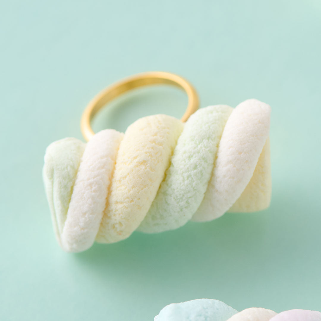 Pastel colored twisted marshmallow became a cute and realistic ring to decorate your outfit.