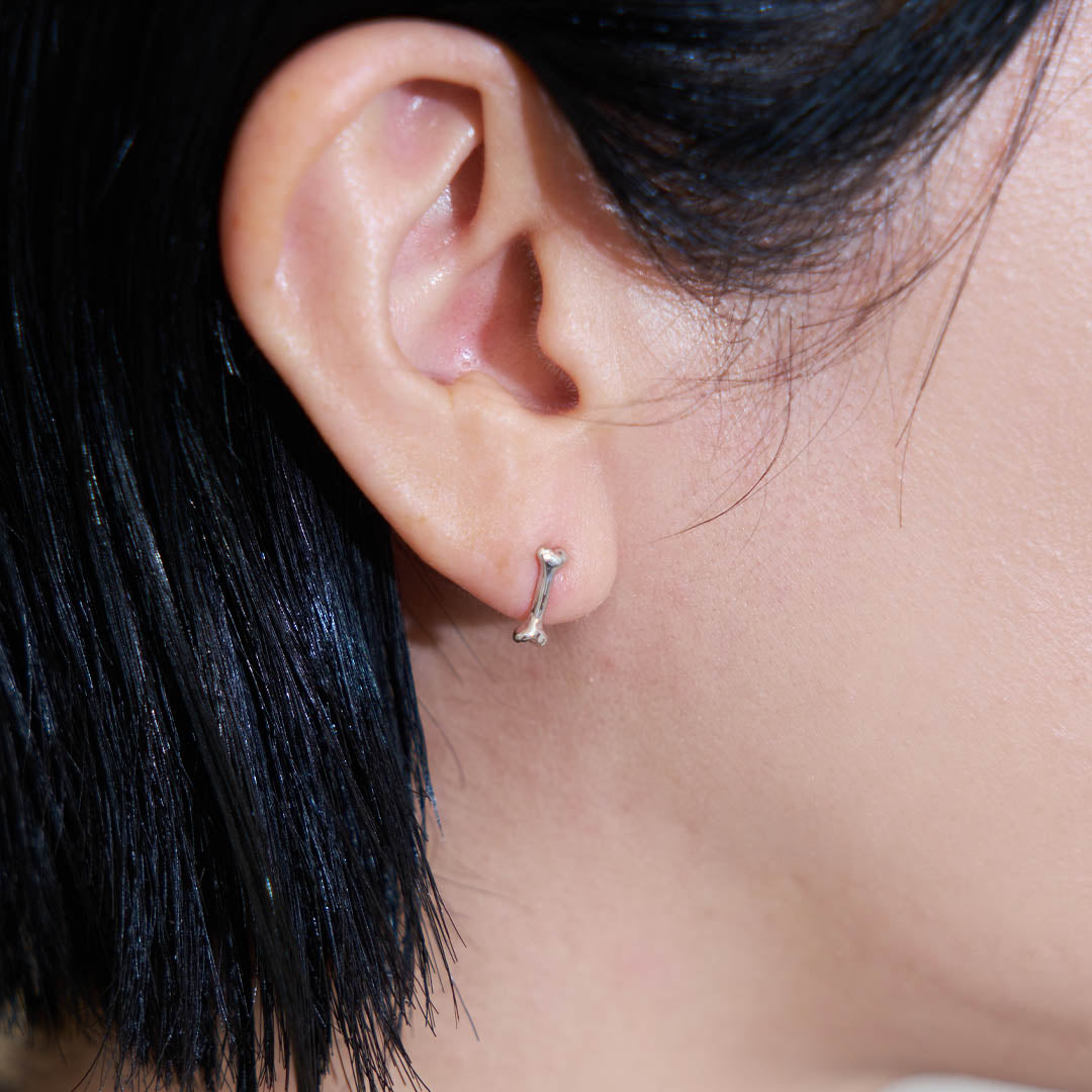 【925 Silver】Secret Bone Pierced Earring (Rhodium Plated / Single)【Japan Jewelry】