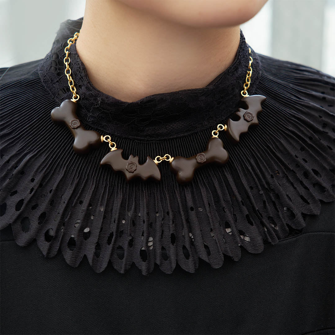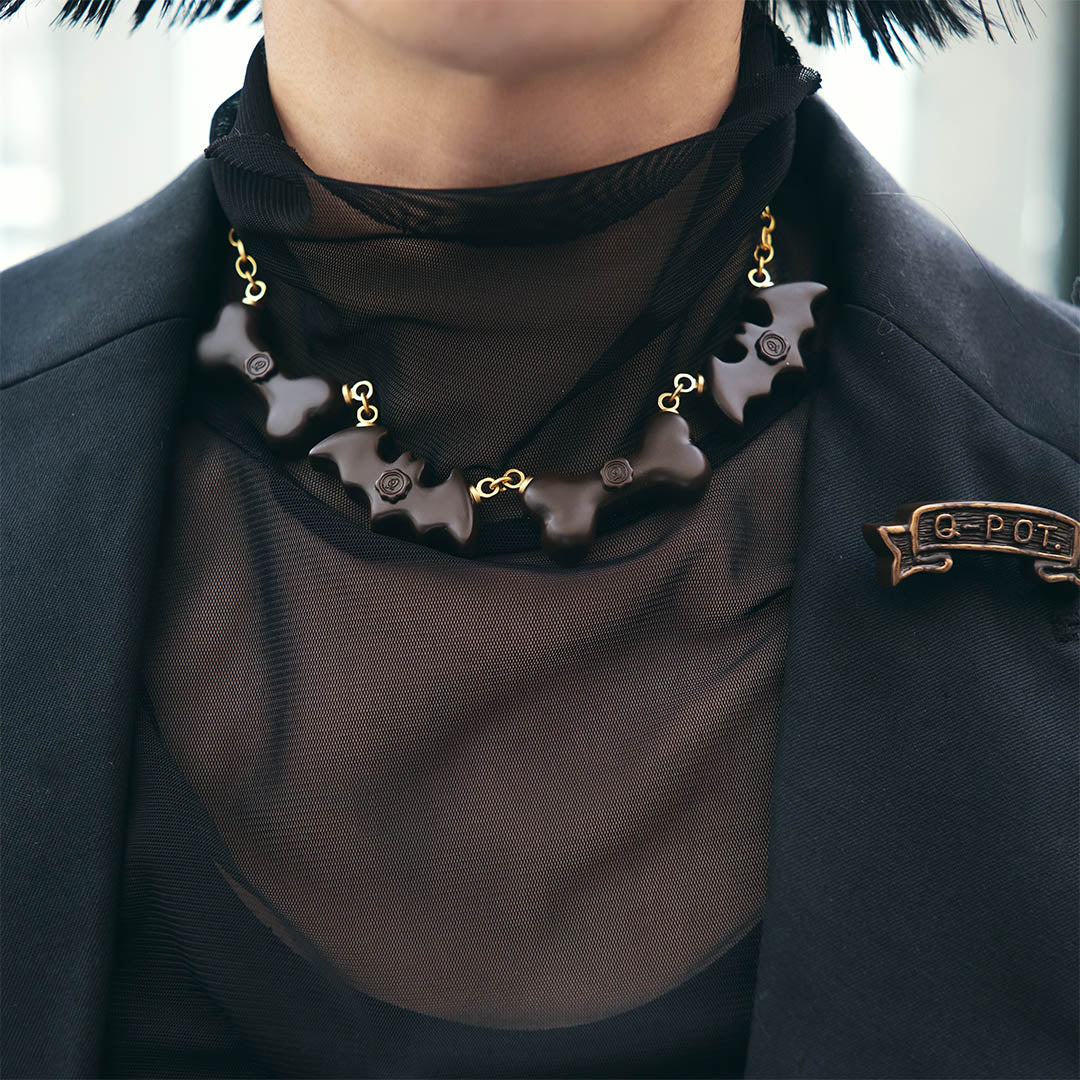 This choker designed with bat chocolates and bone chocolates is crafted with exquisite realism—just like a true artisan confection. Made in Japan and carefully finished by craftsmen.