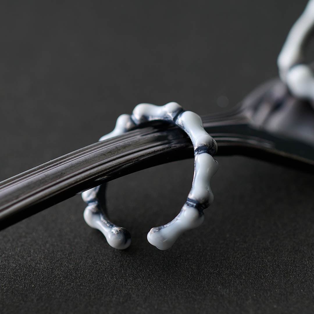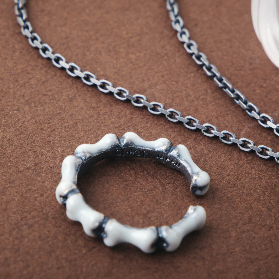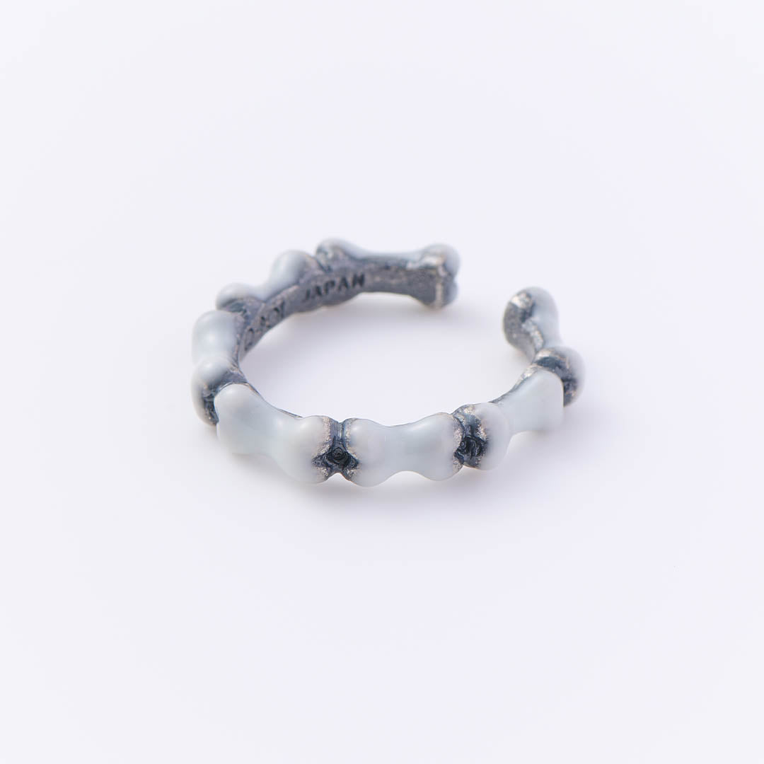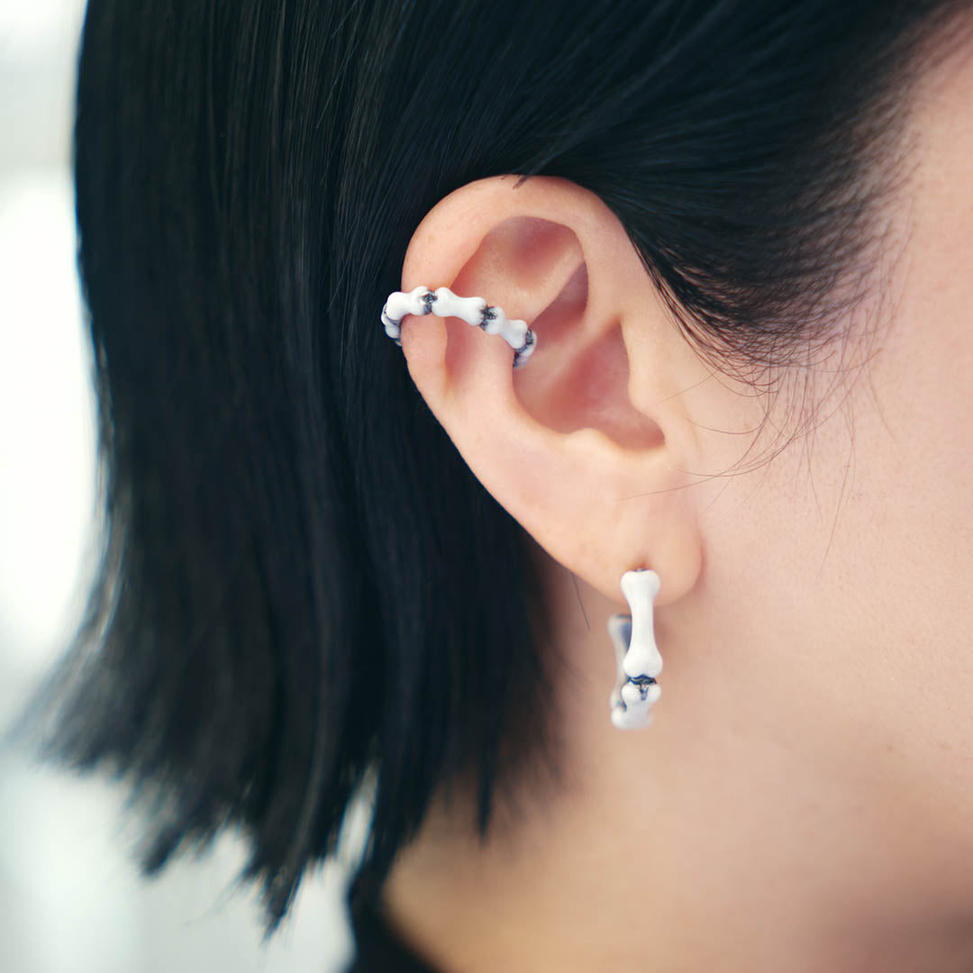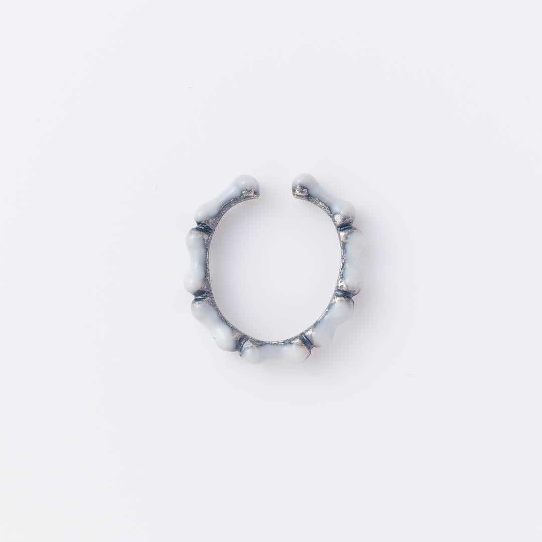 The ear cuff features a subtle ash-gray coloring, creating a refined yet mysterious mood. Its beautifully executed epoxy resin craftsmanship highlights Q-pot.’s dedication to delicate detail.