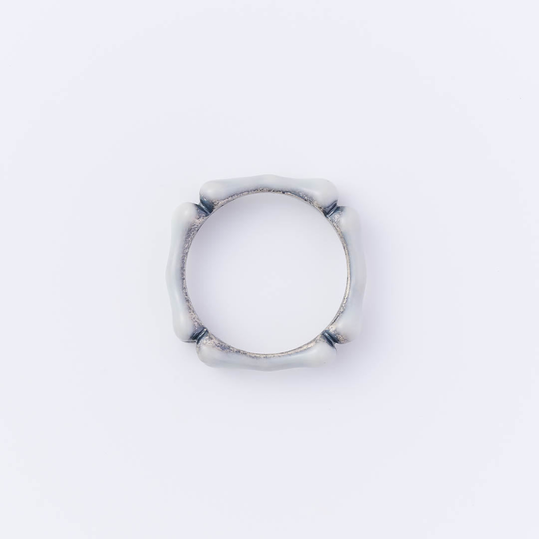 The ring features a subtle ash-gray coloring, creating a refined yet mysterious mood. Its beautifully executed epoxy resin craftsmanship highlights Q-pot.’s dedication to delicate detail.