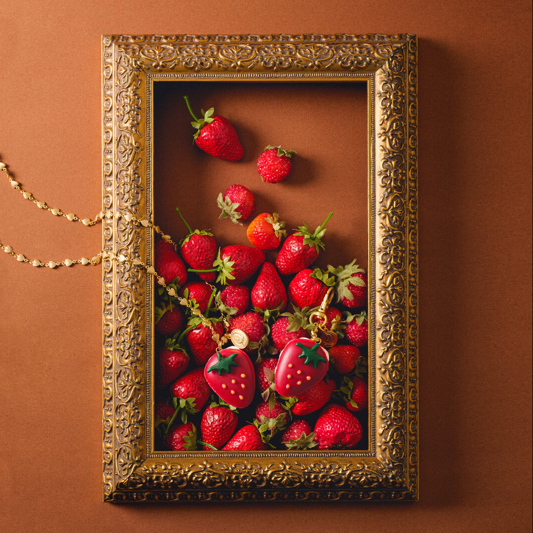 A fresh, sweet and sour fragrance. The adorable strawberry-shaped macaron shells filled with plenty of cream. A dazzling gold heart necklace chain adorned to the fresh, sweet and sour bright red strawberry. You'll be in romantic mode all at once as long as you have a strawberry macaron on you.
