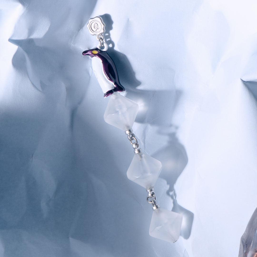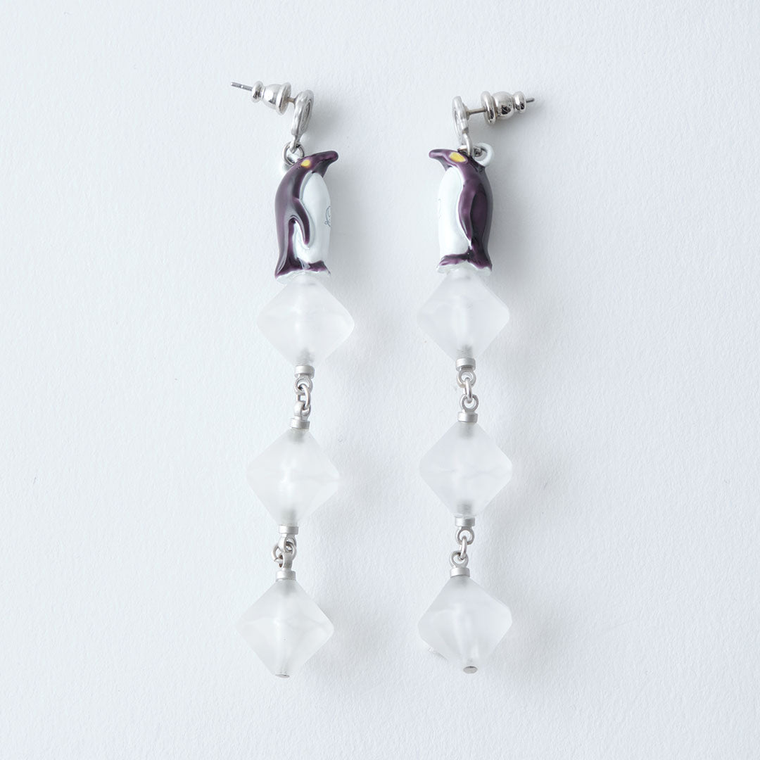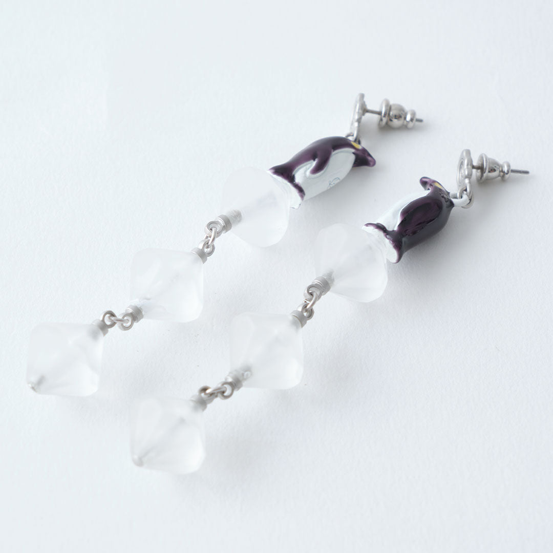 The beautiful form of the penguin's face and body is smoothly painted with glossy epoxy. The three-tiered ice earrings sway gently and become the point of your outfit.