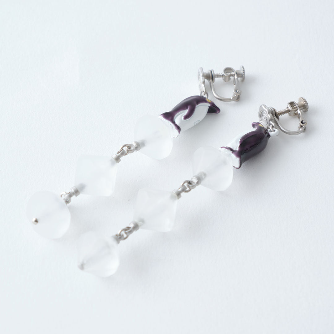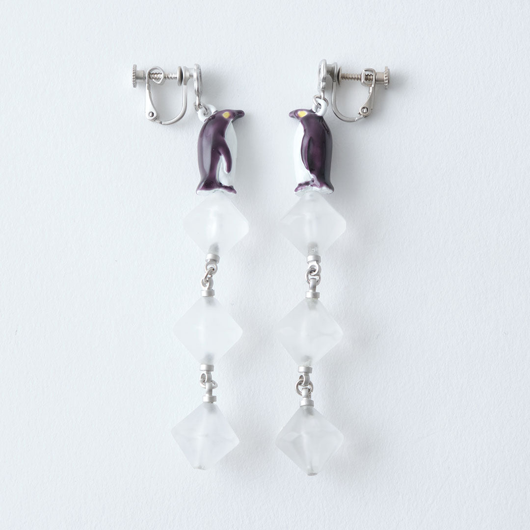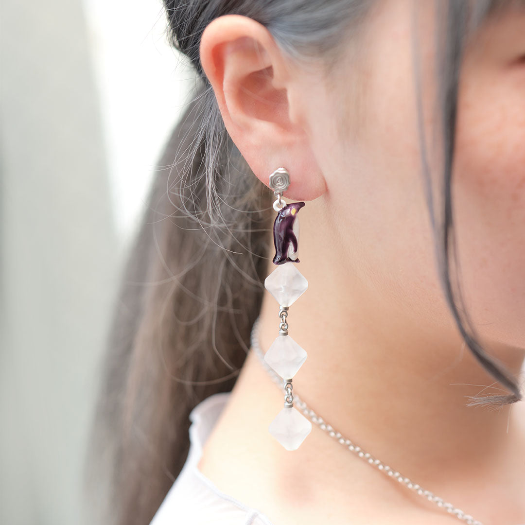The beautiful form of the penguin's face and body is smoothly painted with glossy epoxy. The three-tiered ice earrings sway gently and become the point of your outfit.