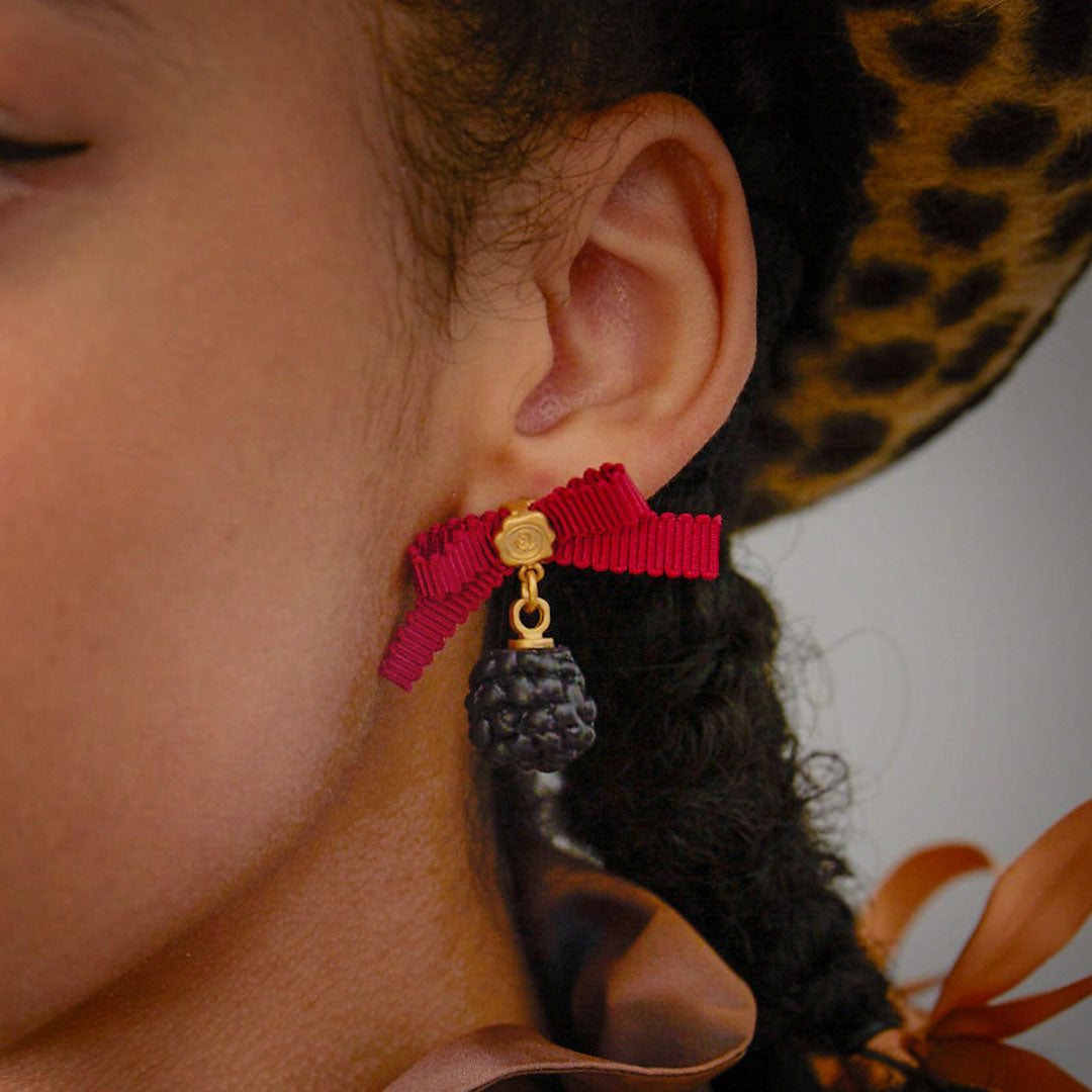 A set of raspberry and blackberry earrings with an elegant, classic charm—perfect to enjoy alongside your canelé.