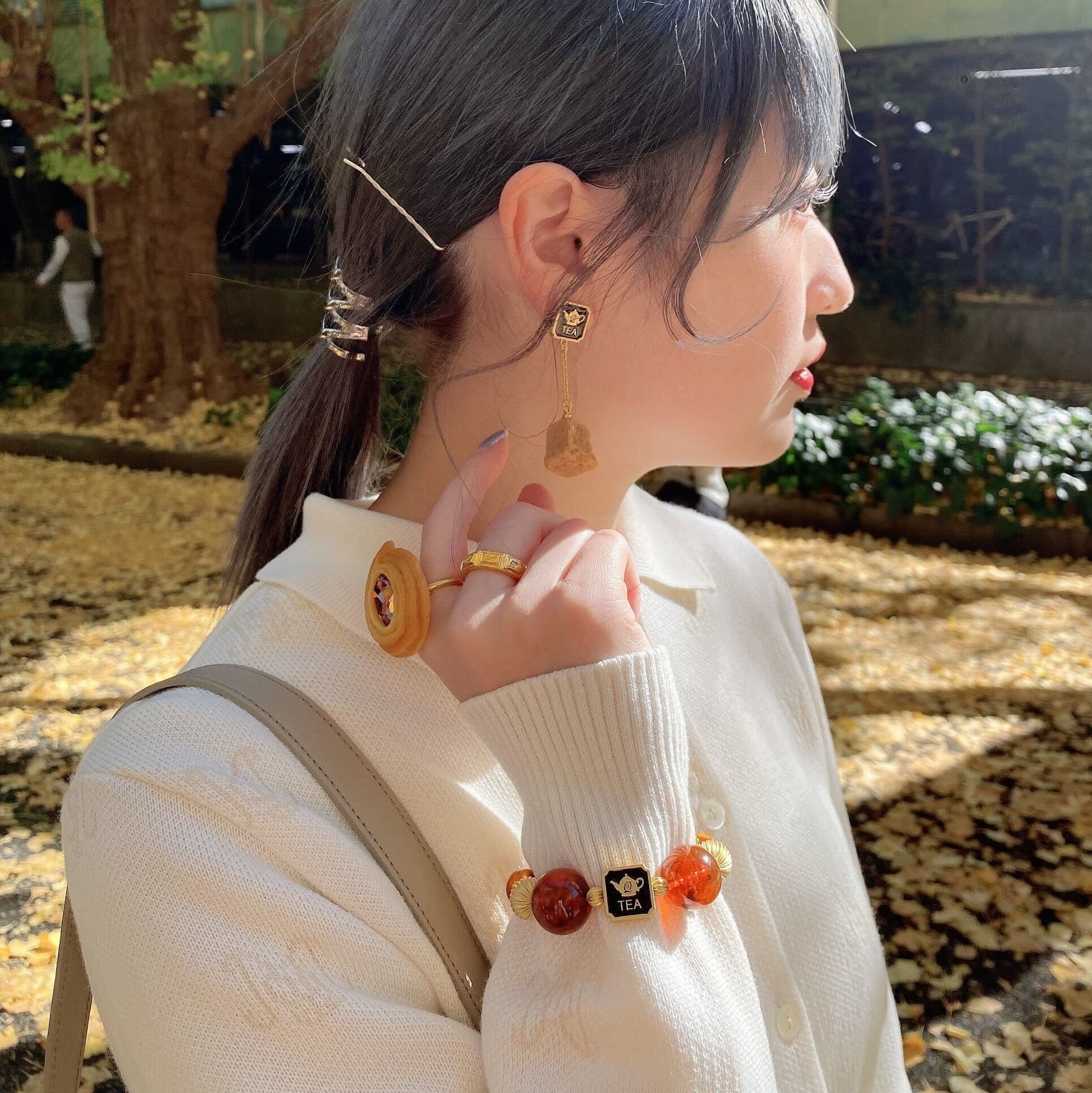 Brown Sugar for Tea Earring (Single)【Japan Jewelry】