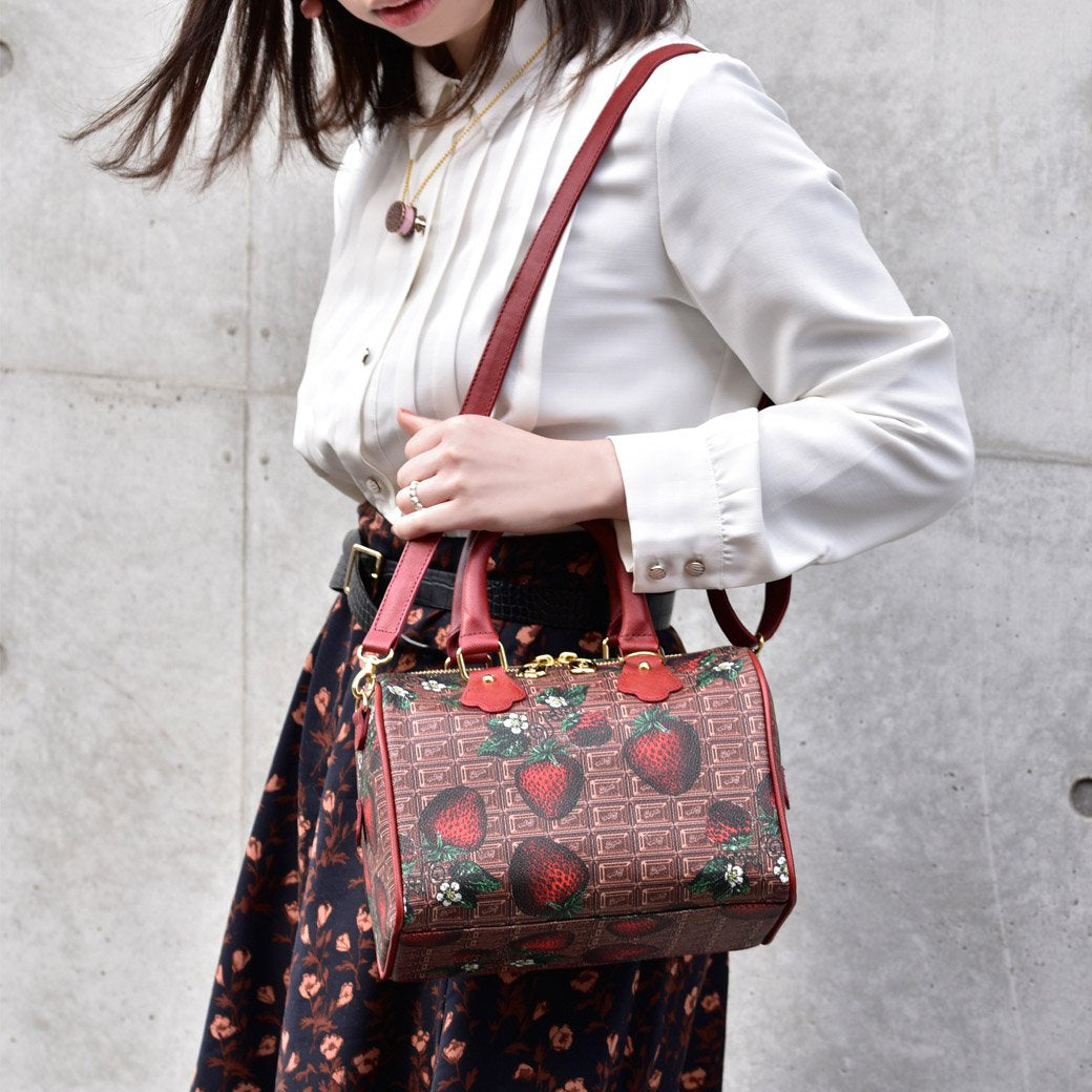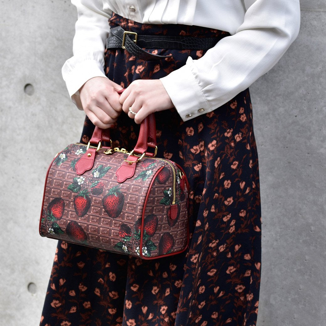 Chocolate × Strawberry Mini Boston Leather Bag【Japan Jewelry】