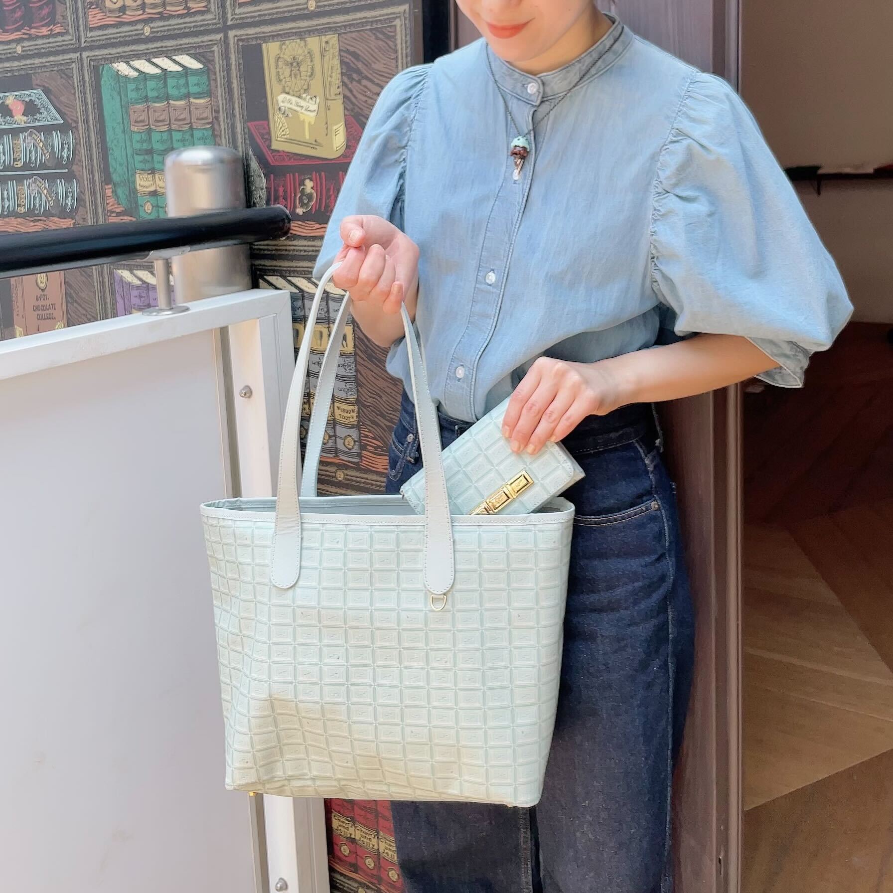 Mint Chocolate Zip Leather Tote Bag【Japan Jewelry】
