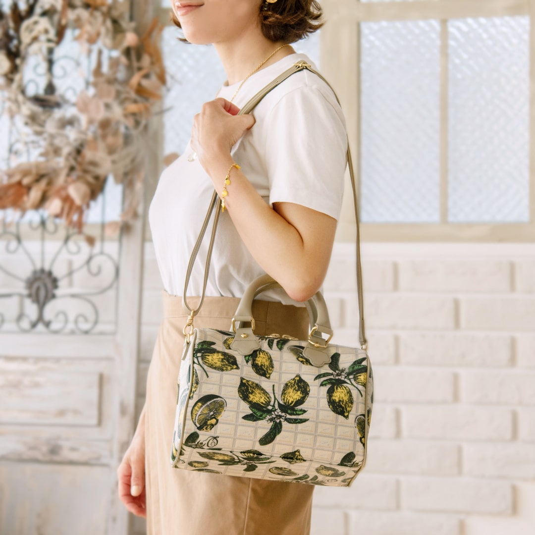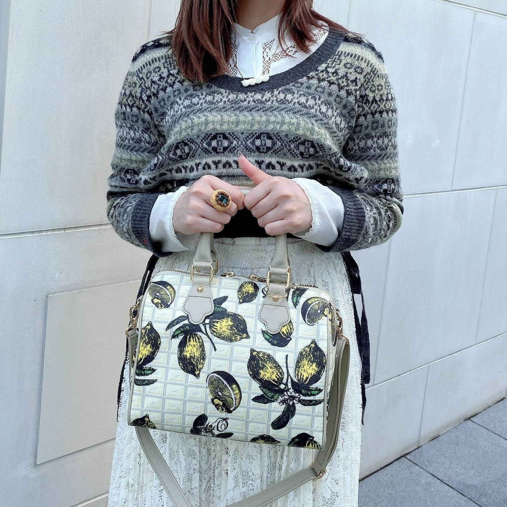 White Chocolate × Honey Lemon Mini Boston Leather Bag【Japan Jewelry】