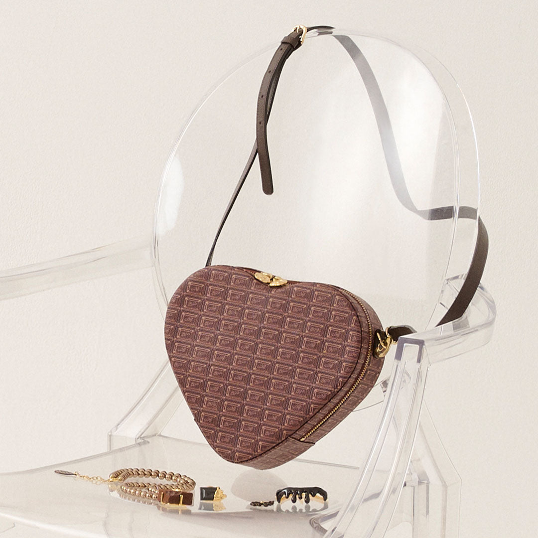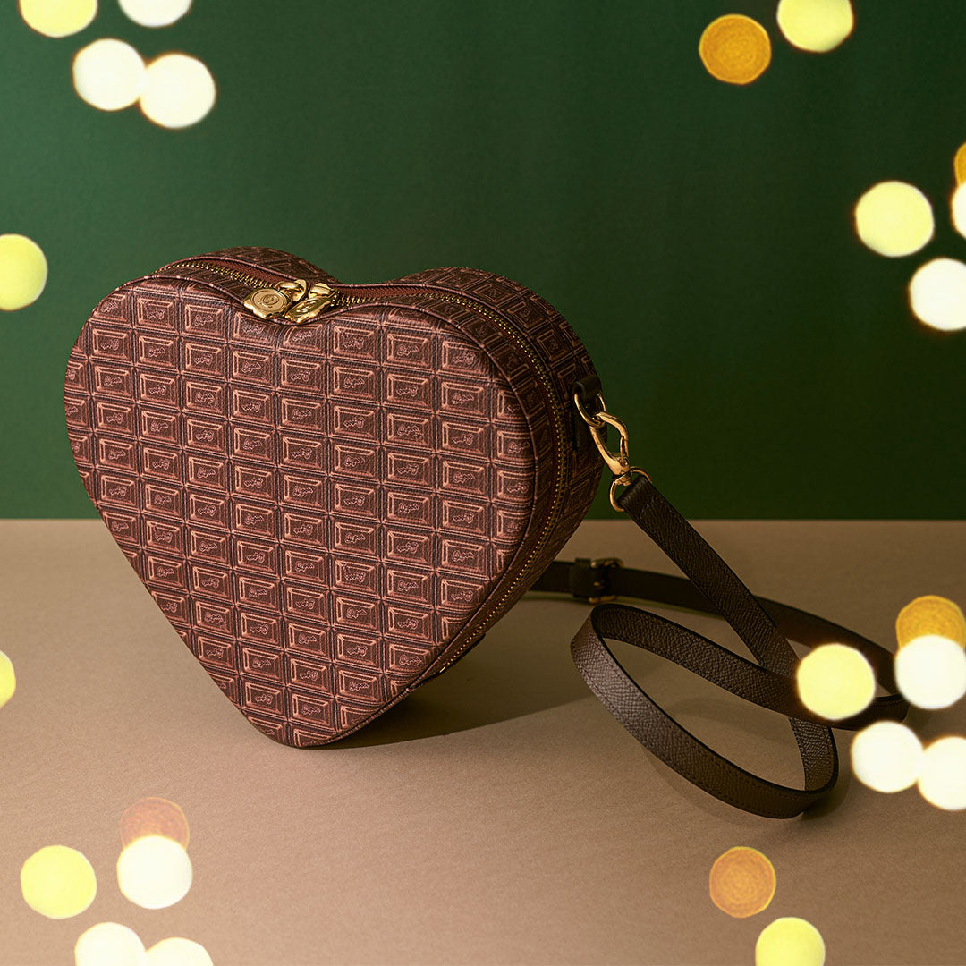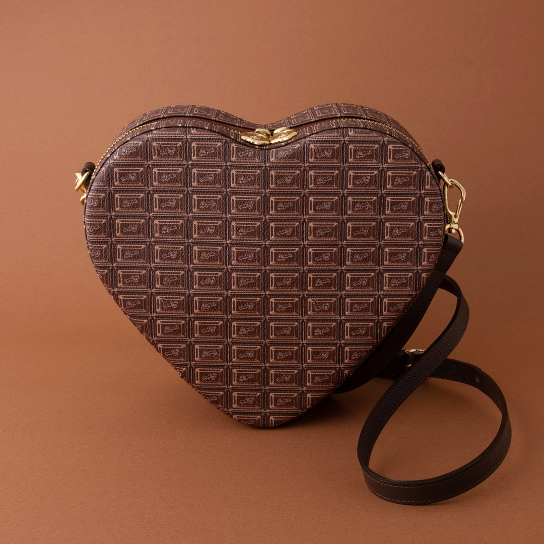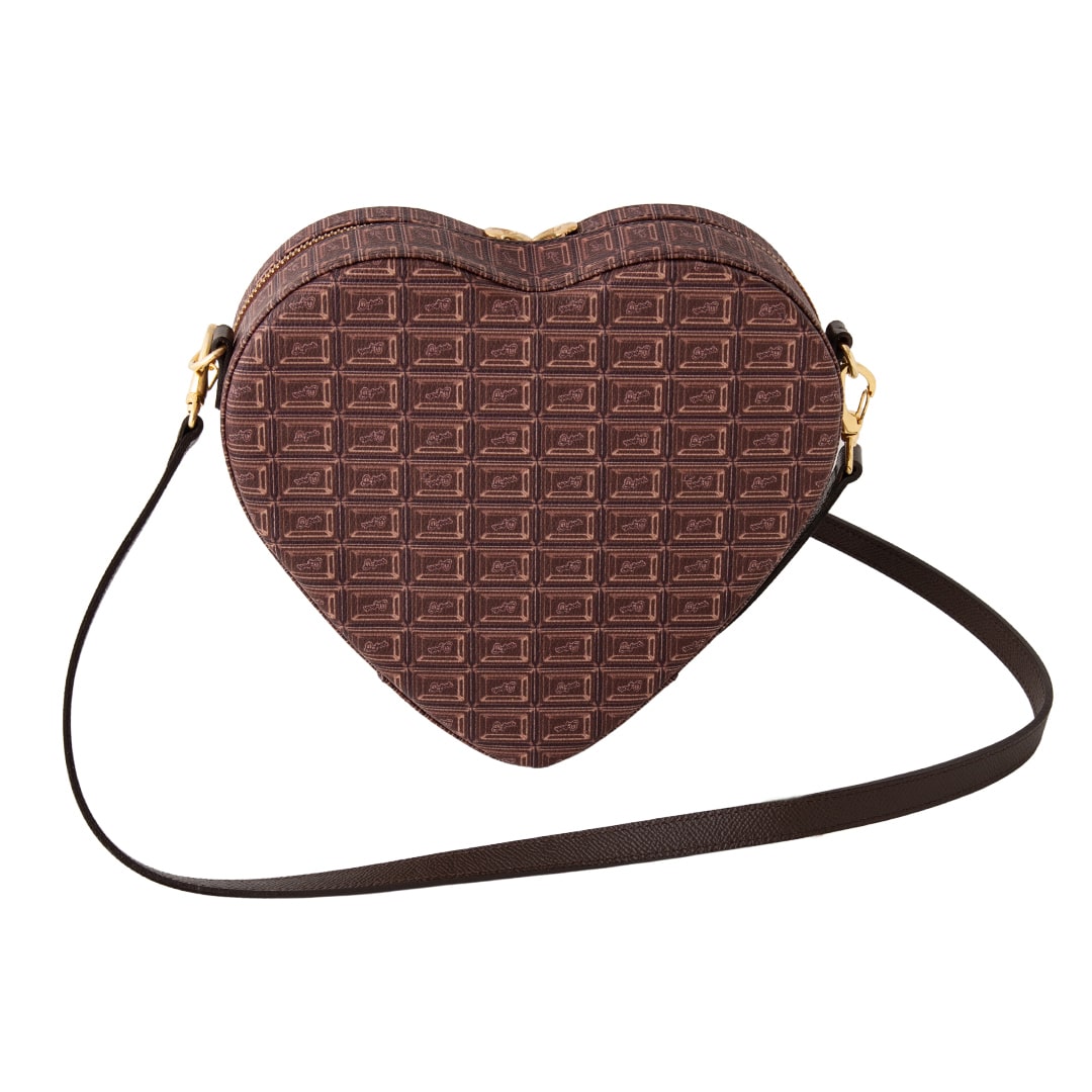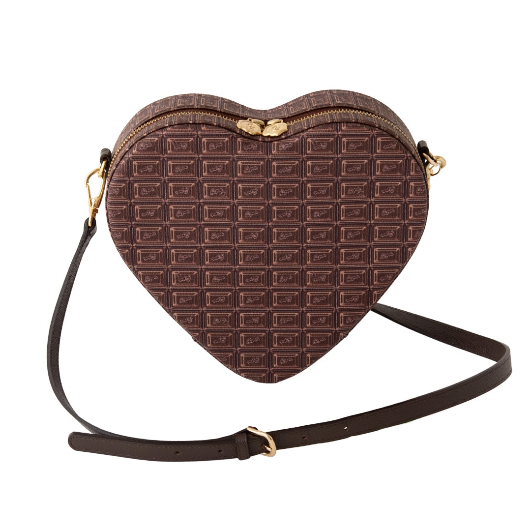 This romantic heart-shaped crossbody bag is inspired by a bar of bittersweet chocolate. Handcrafted in Japan from water-resistant, PVC-coated canvas and finished with a genuine leather strap, it’s as functional as it is adorable.