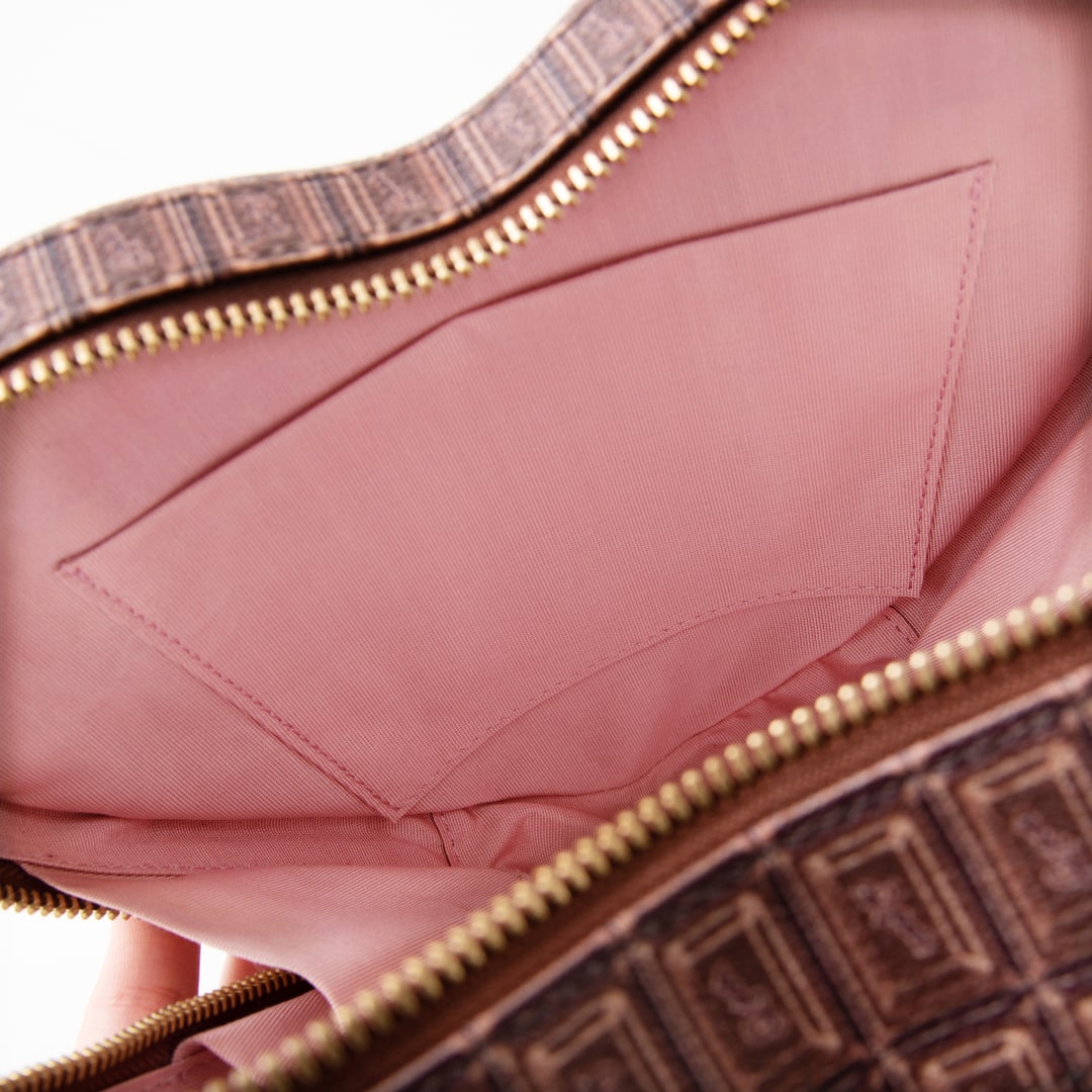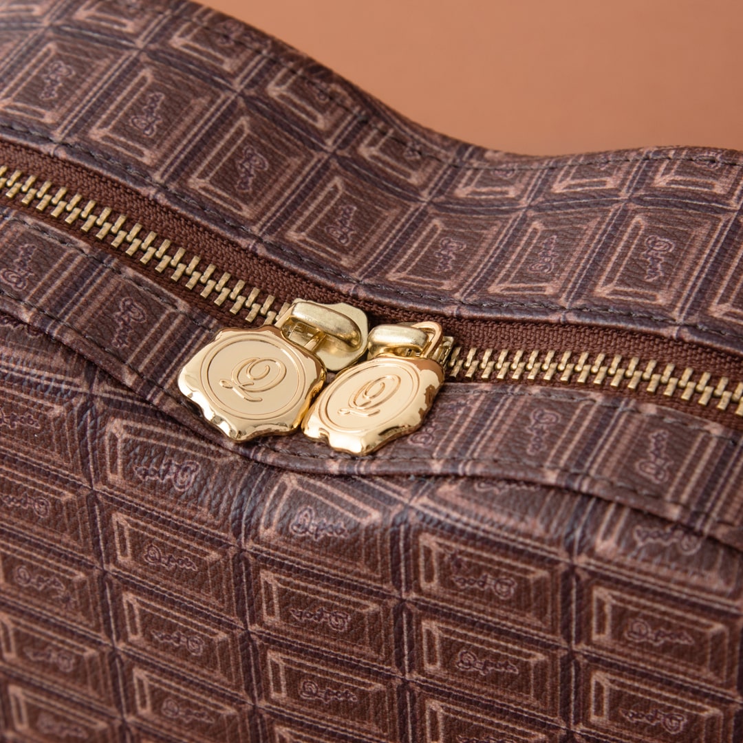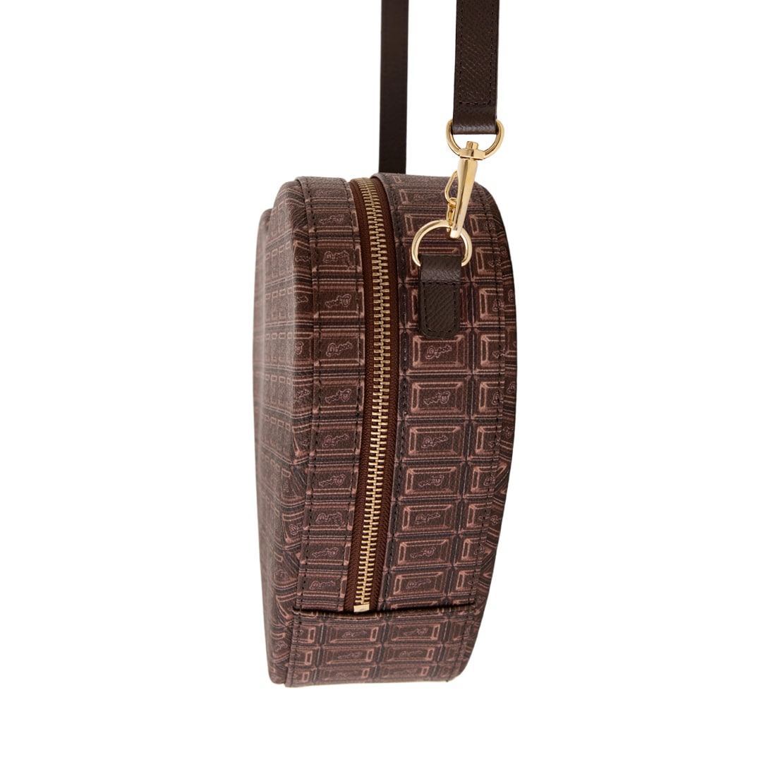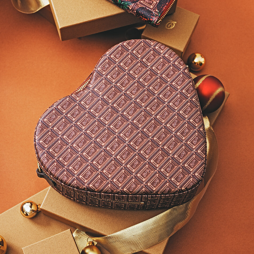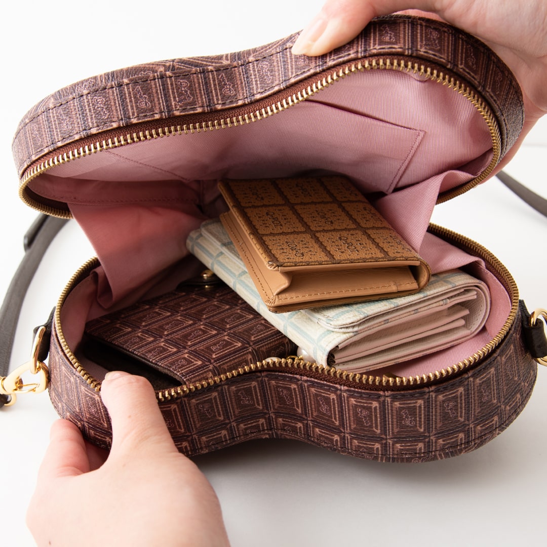 This romantic heart-shaped crossbody bag is inspired by a bar of bittersweet chocolate. Handcrafted in Japan from water-resistant, PVC-coated canvas and finished with a genuine leather strap, it’s as functional as it is adorable.