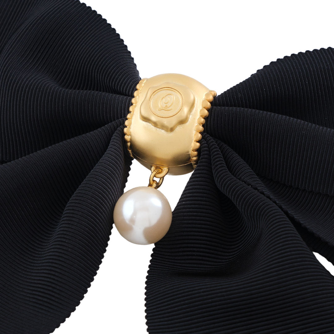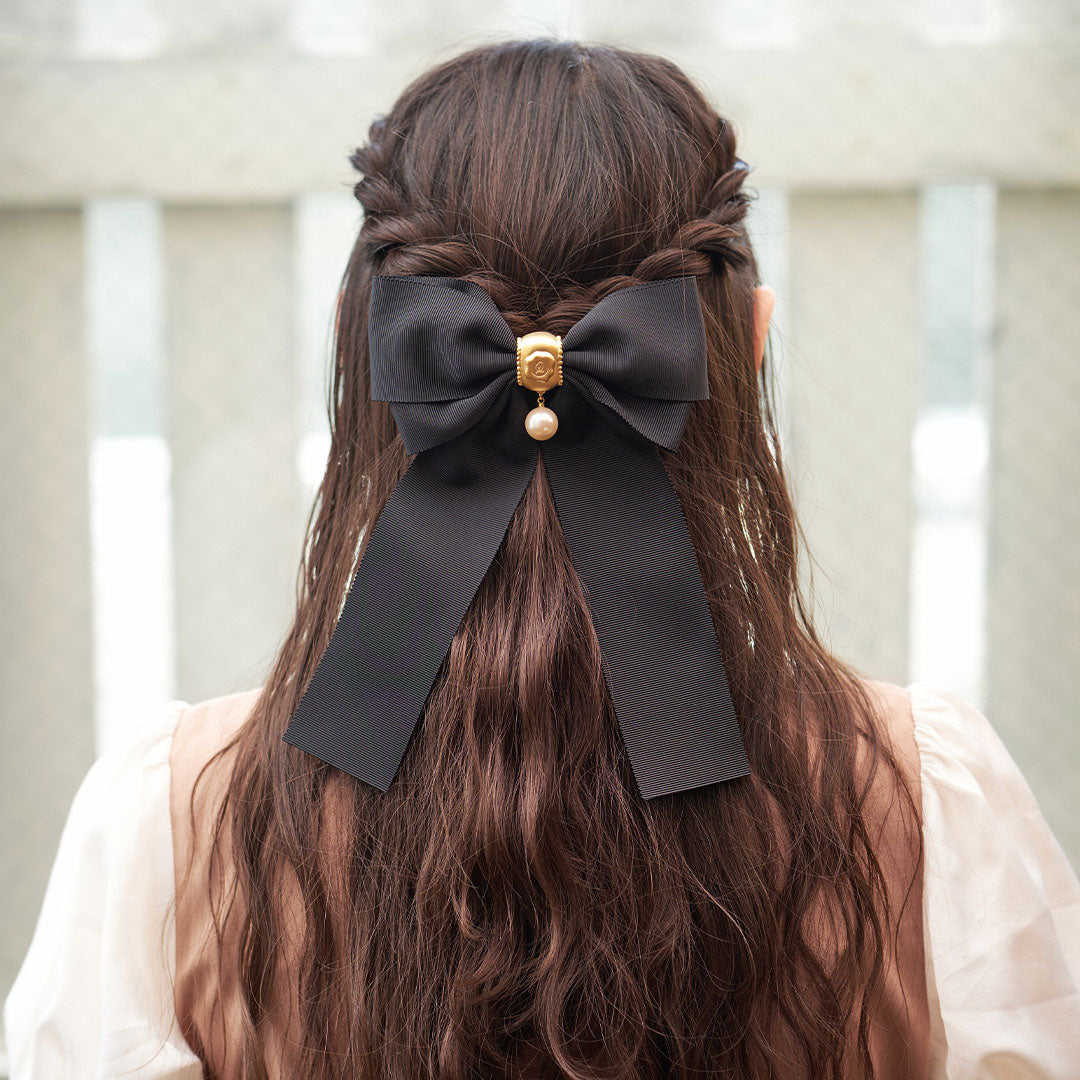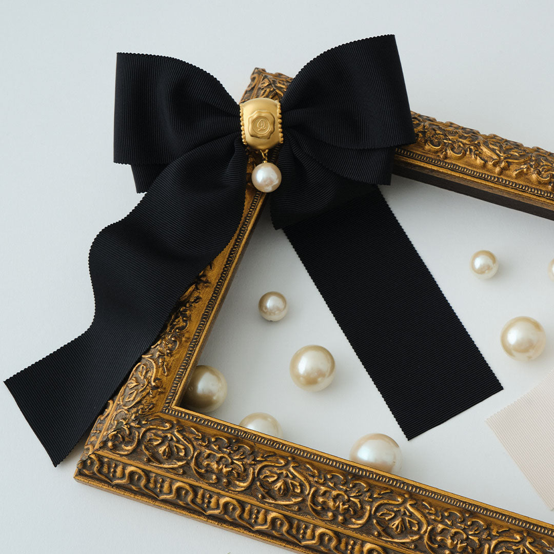 Grosgrain Ribbon Pearl Barrette (Black)【Japan Jewelry】