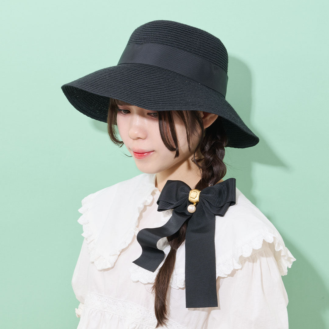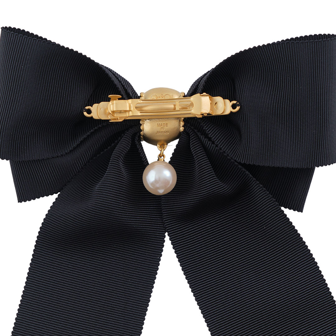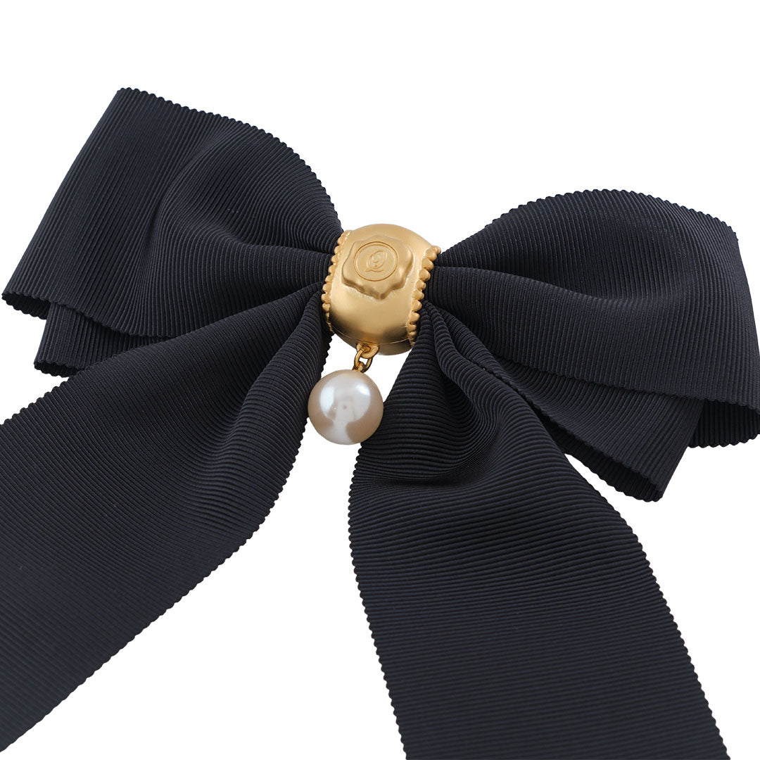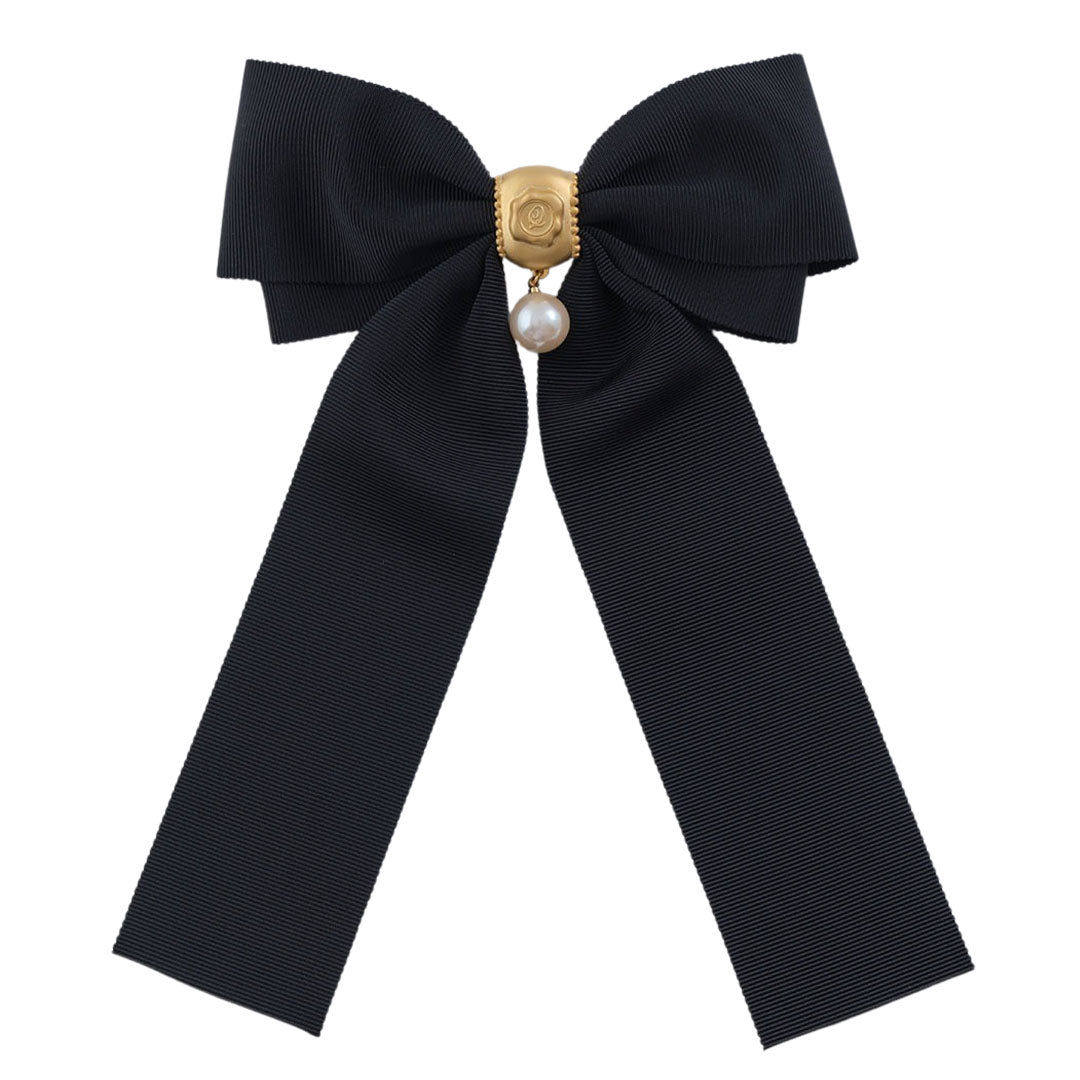 Grosgrain Ribbon Pearl Barrette (Black)【Japan Jewelry】