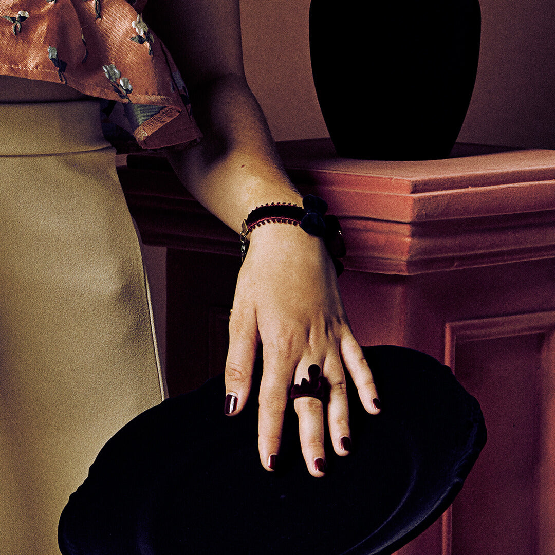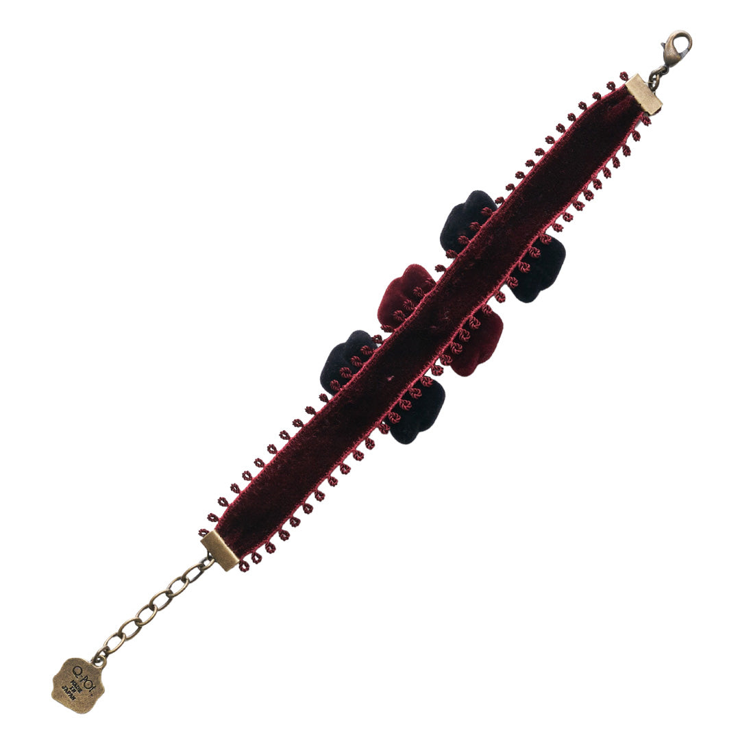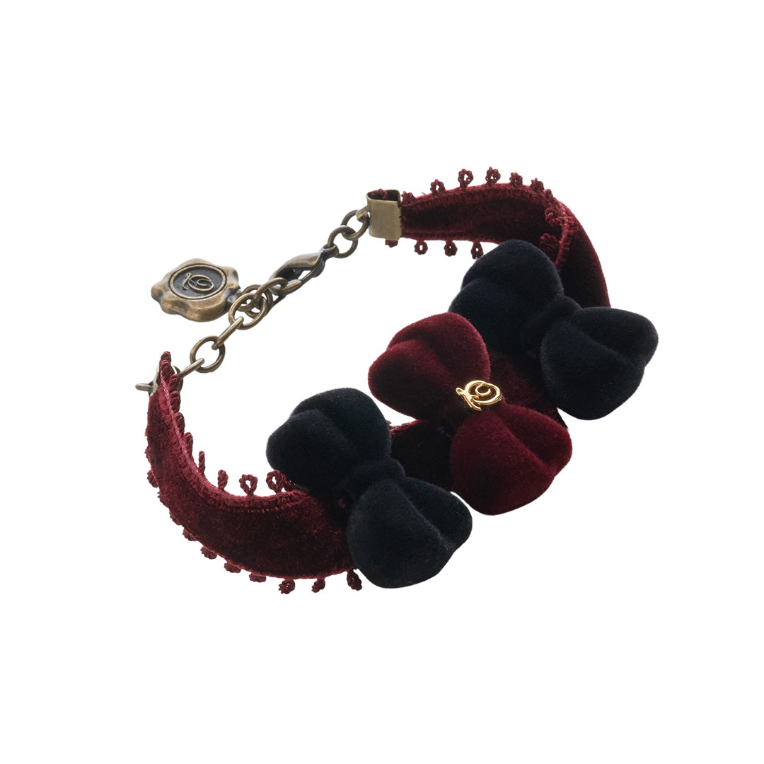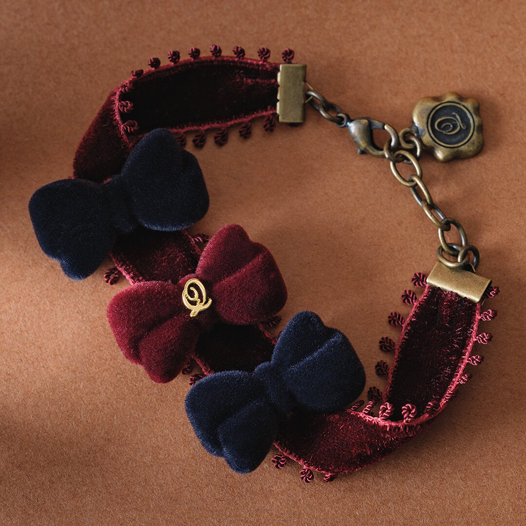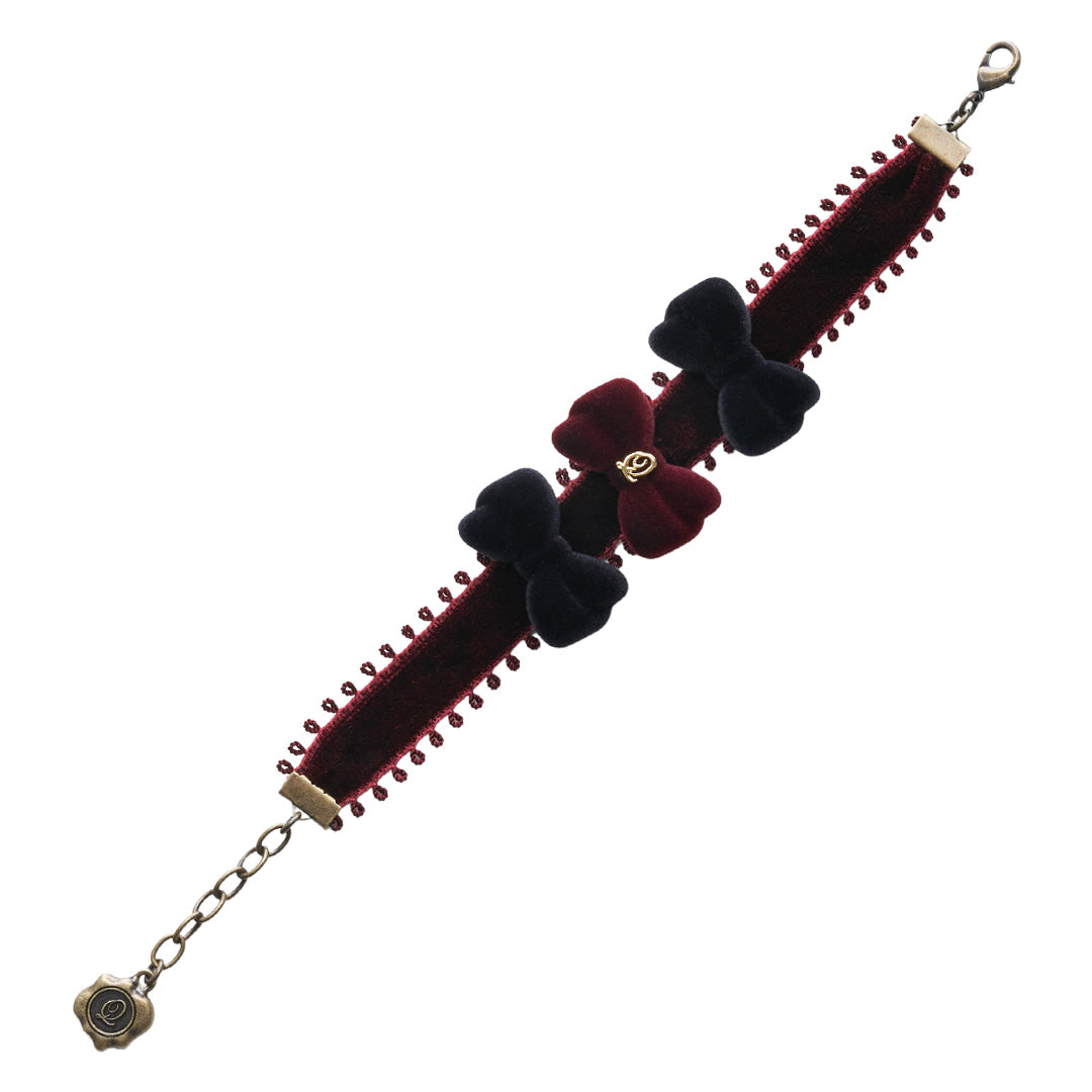 Flocky Black & Bordeaux Ribbon Bracelet【Japan Jewelry】