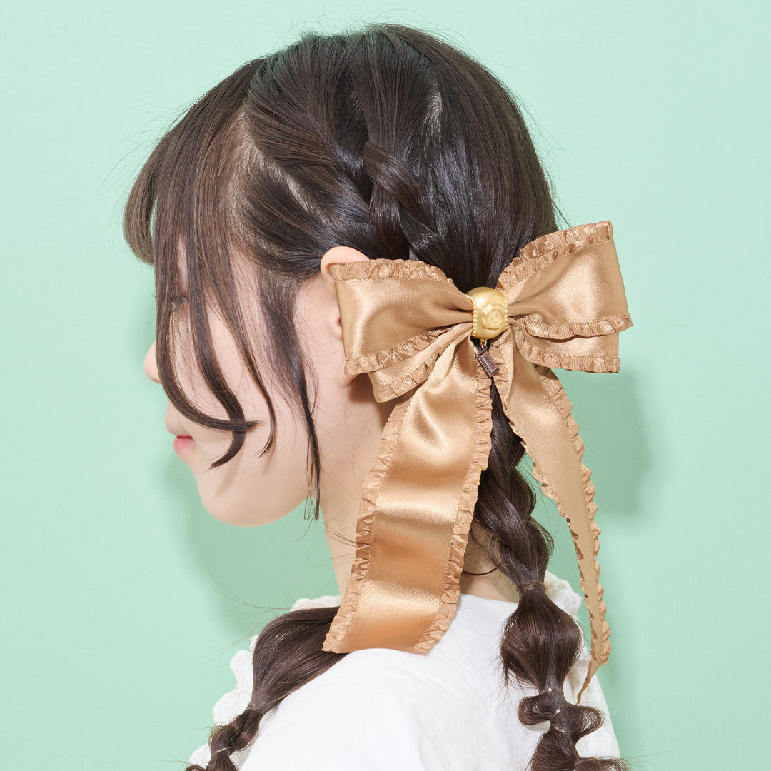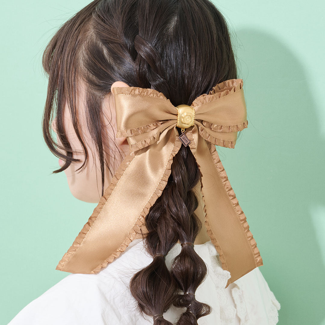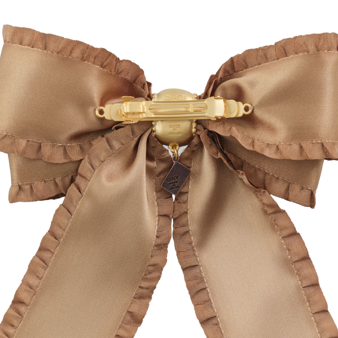Frilled Satin Ribbon Chocolate Barrette (Brown Gold)【Japan Jewelry】