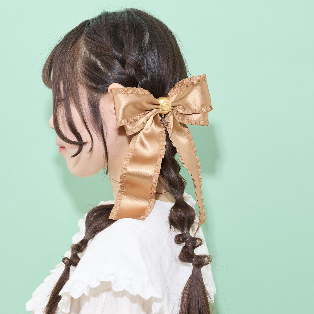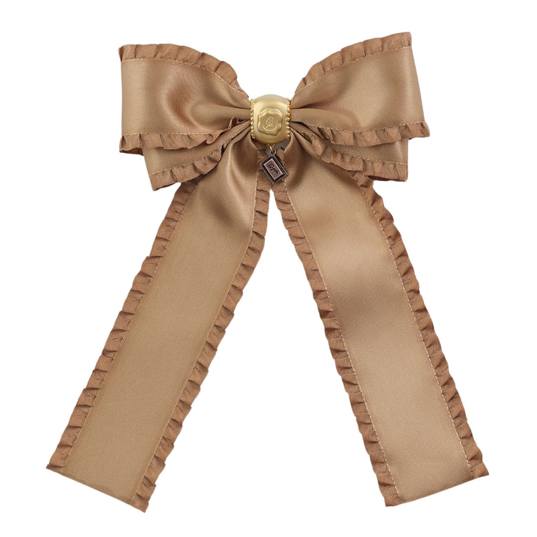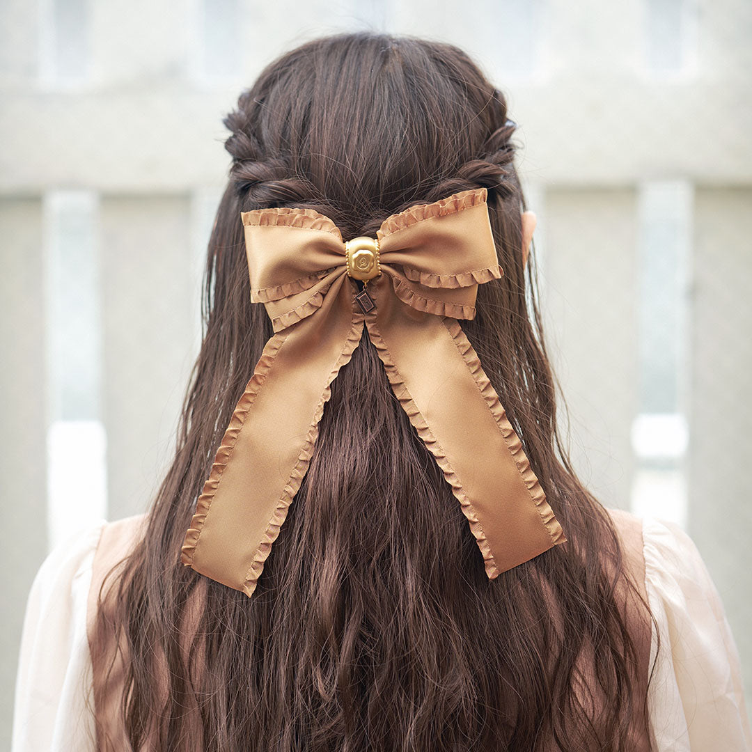 Frilled Satin Ribbon Chocolate Barrette (Brown Gold)【Japan Jewelry】