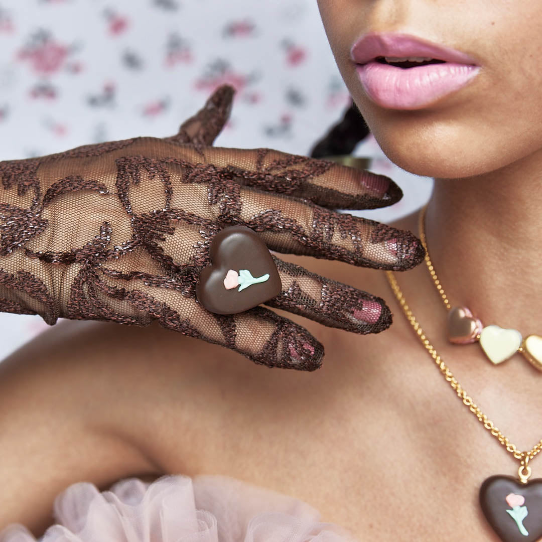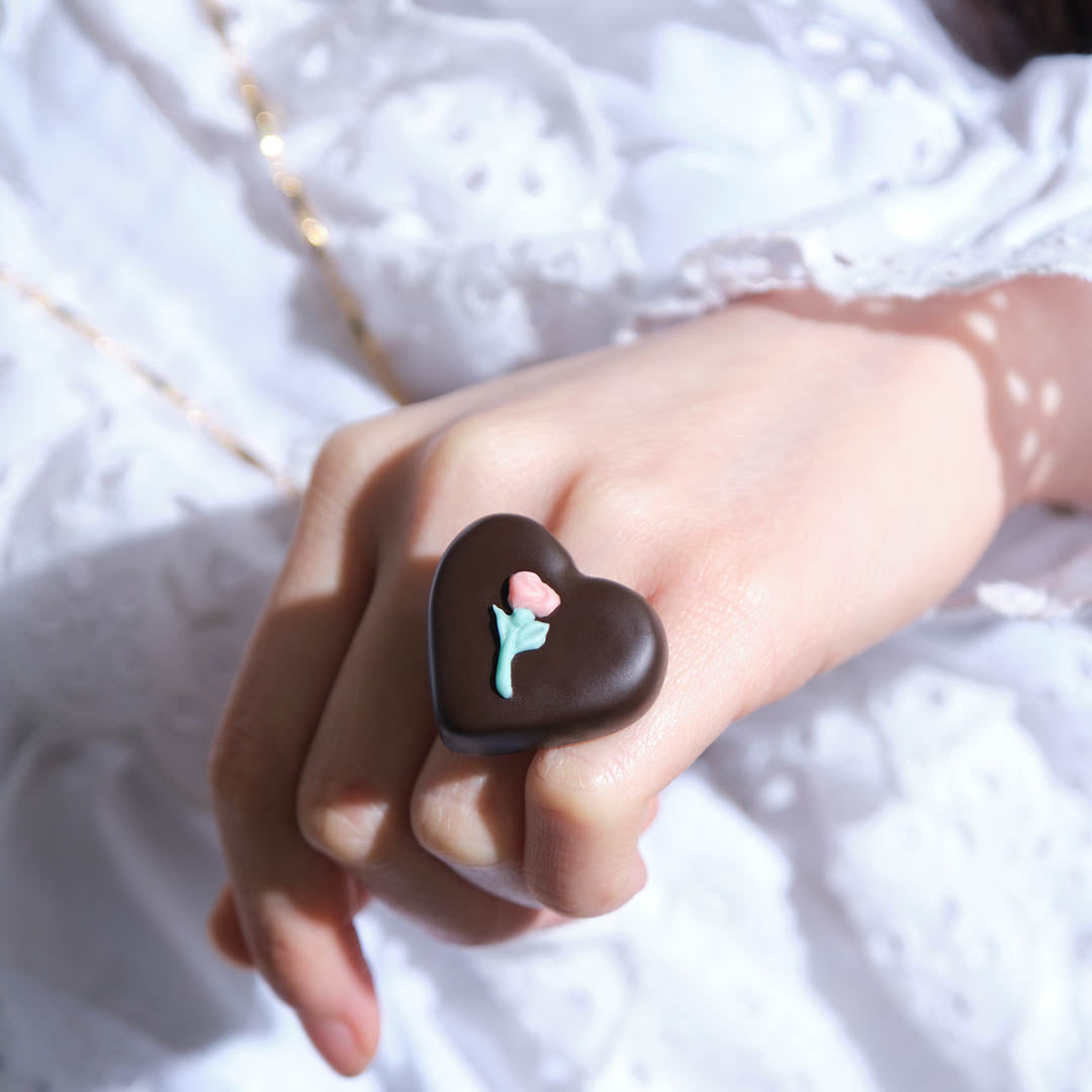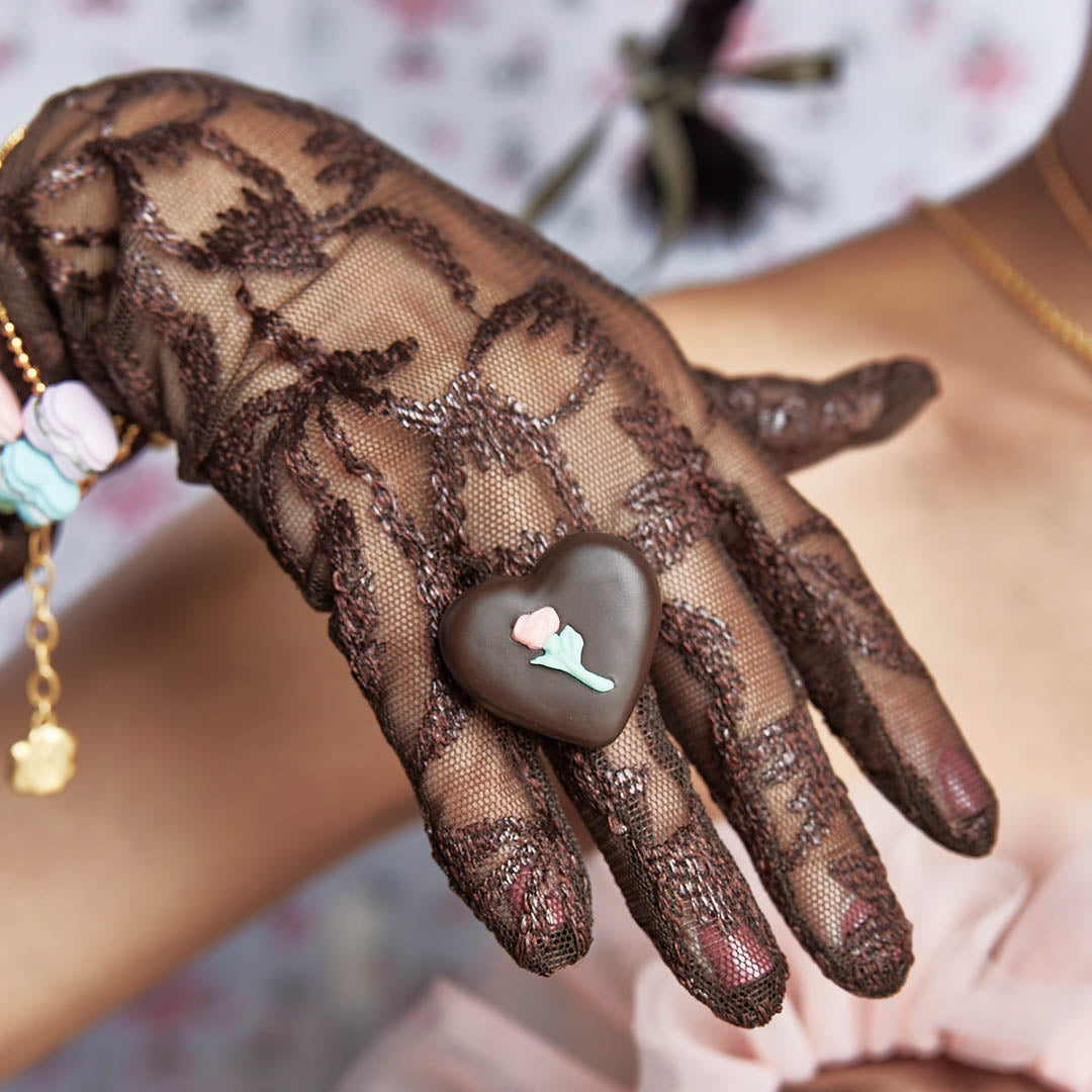 Classical yet sophisticated like a vintage jewelry, the heart-shaped chocolate looks so delicate, it feels as though it might melt at the slightest touch.