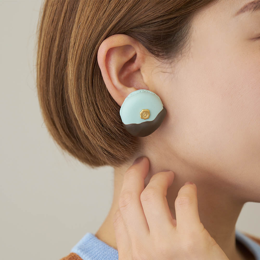 Chocolate Dipped Macaron Earring (Mint Chocolate / Single)【Japan Jewelry】