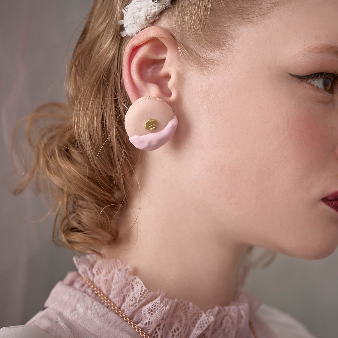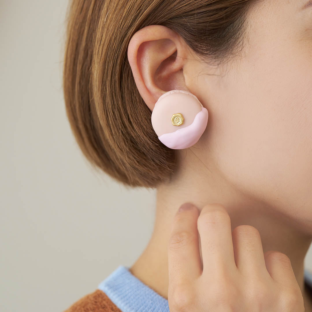 Chocolate Dipped Macaron Earring (Strawberry / Single)【Japan Jewelry】
