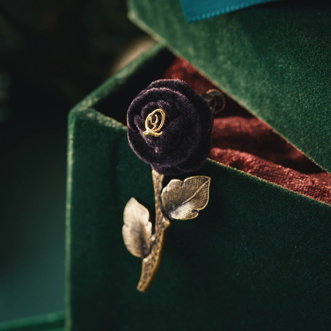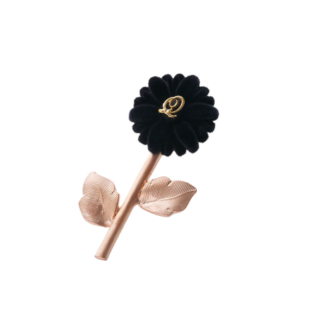 The gerbera clip-on earring has a mysterious appearance that seems like something strange is about to happen. A gold plate of "Q" is in the center of the gerbera. We delicately make it even to the details of leaves.