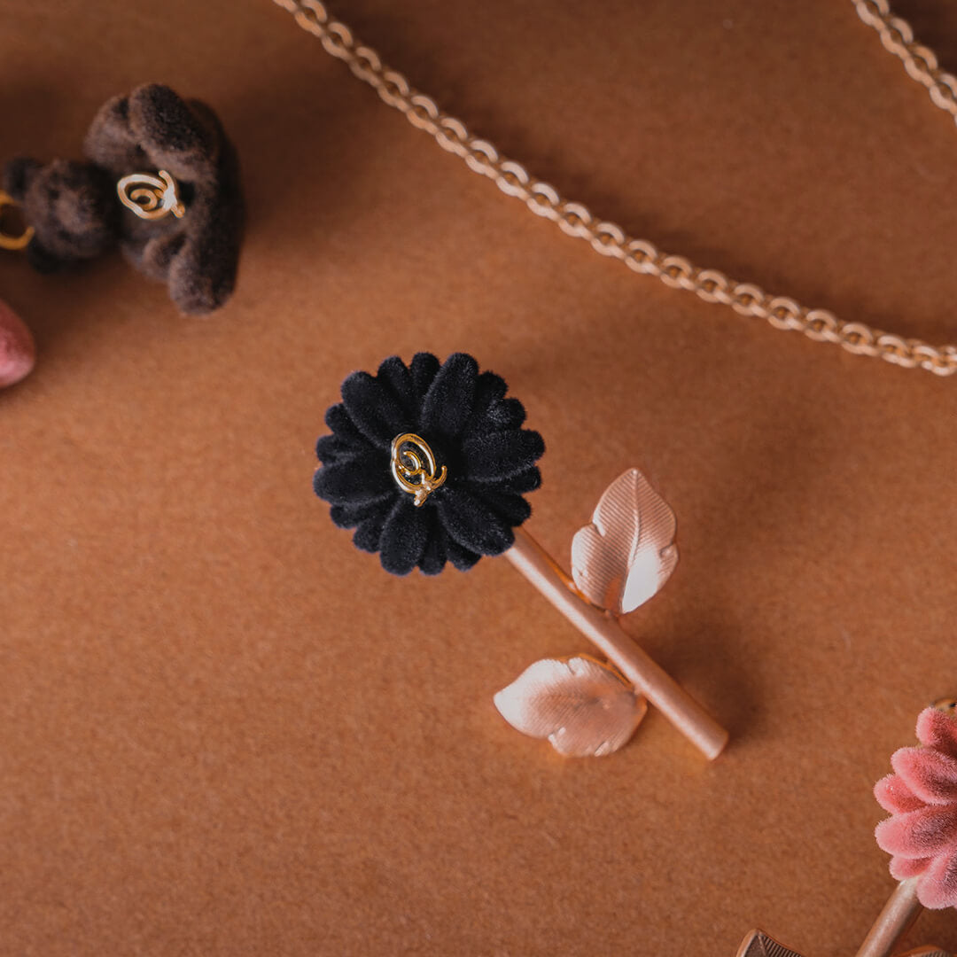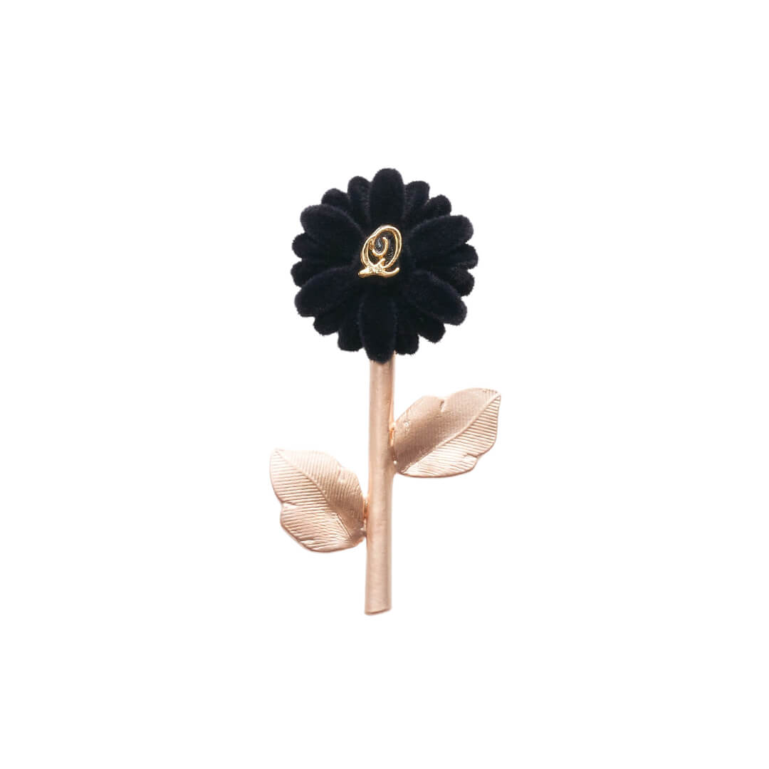 Flocky Black Gerbera Clip-On Earring (Single)【Japan Jewelry】