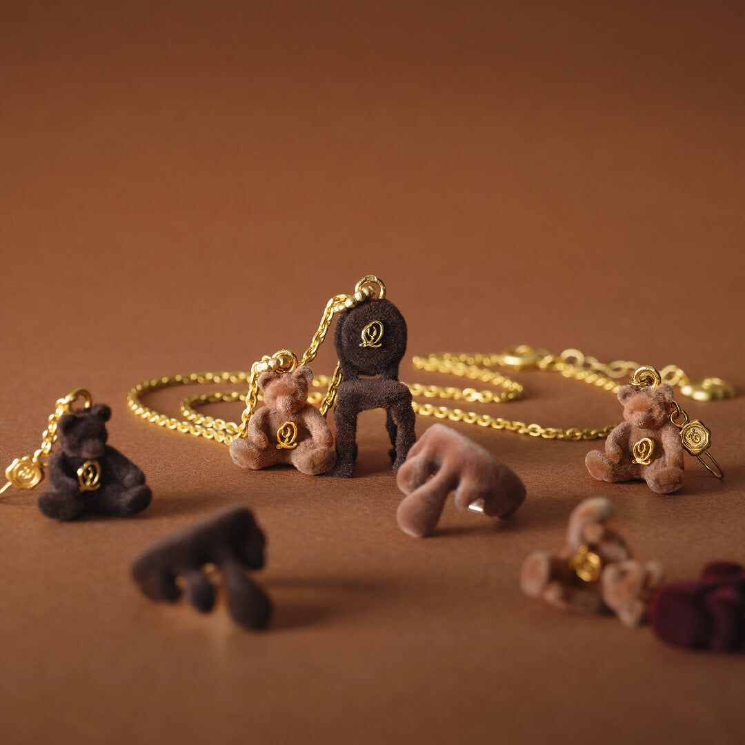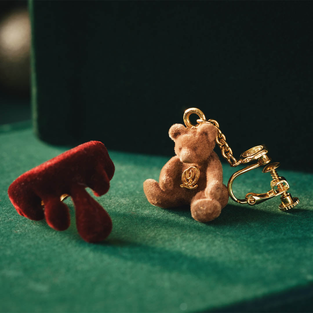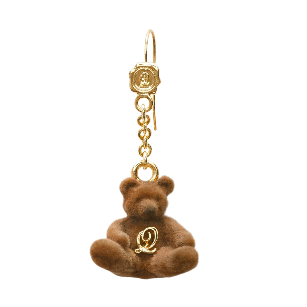 A teddy bear pierced earring with a mysterious appearance that seems like something strange is about to happen. A gold plate of "Q" is on the teddy bear. If you are love teddy bear then you cannot miss it.