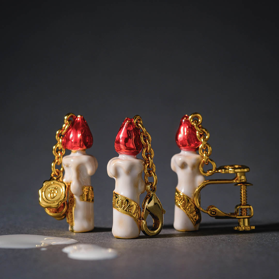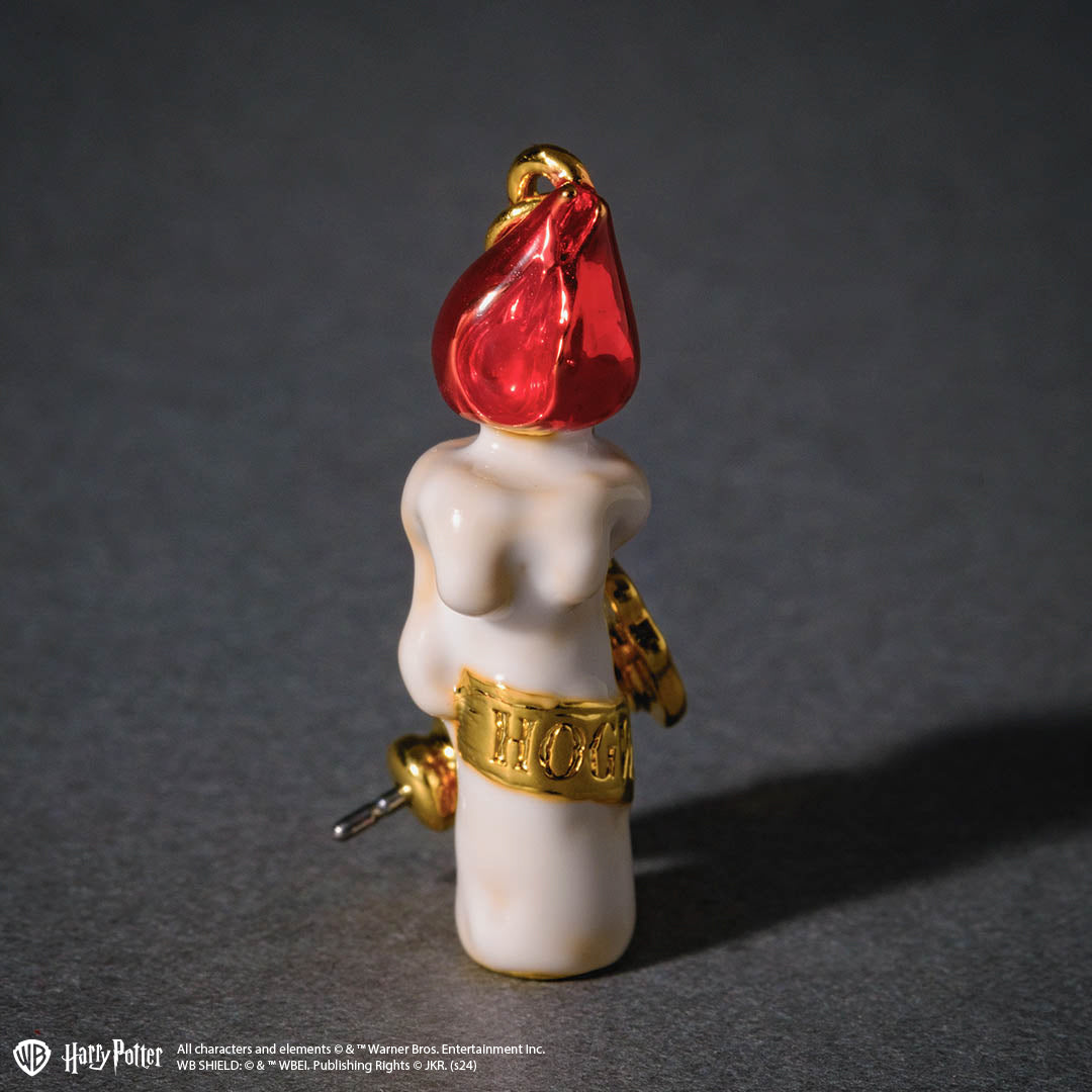 The melted white chocolate-style candle earring is inspired by the enchanting candles that light up the Great Hall of Hogwarts School of Witchcraft and Wizardry. Each piece is meticulously handcrafted in Japan, ensuring exceptional quality and attention to detail.