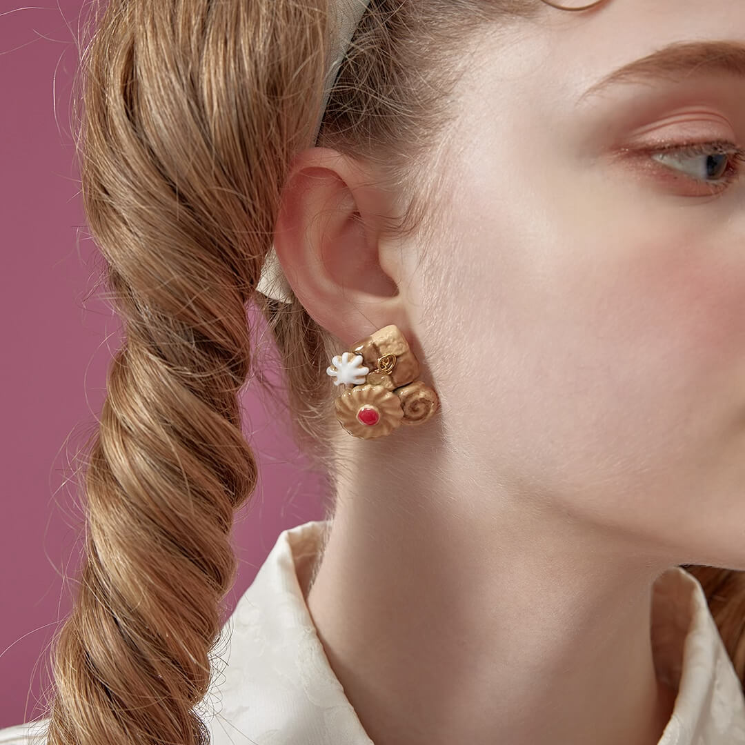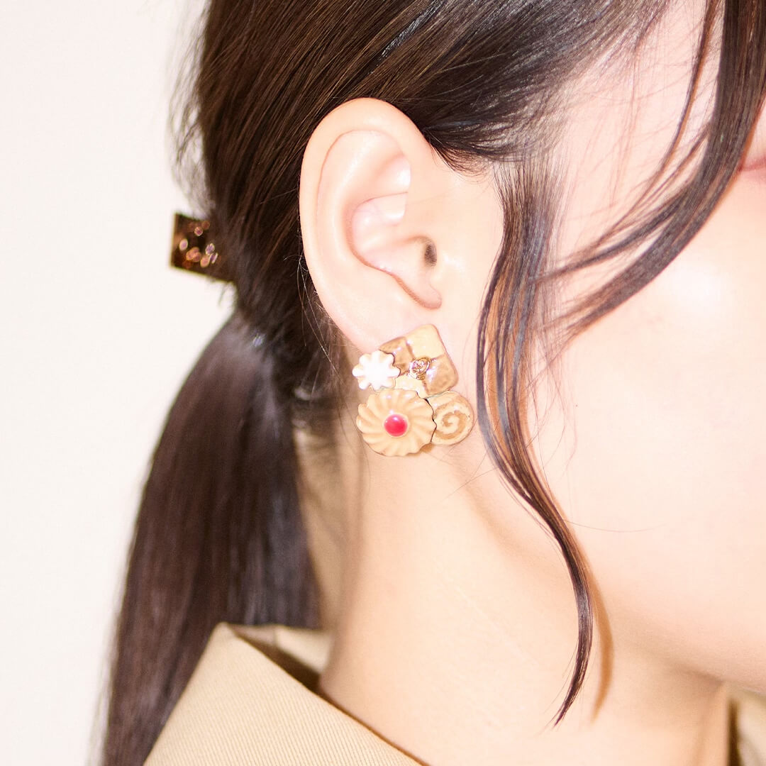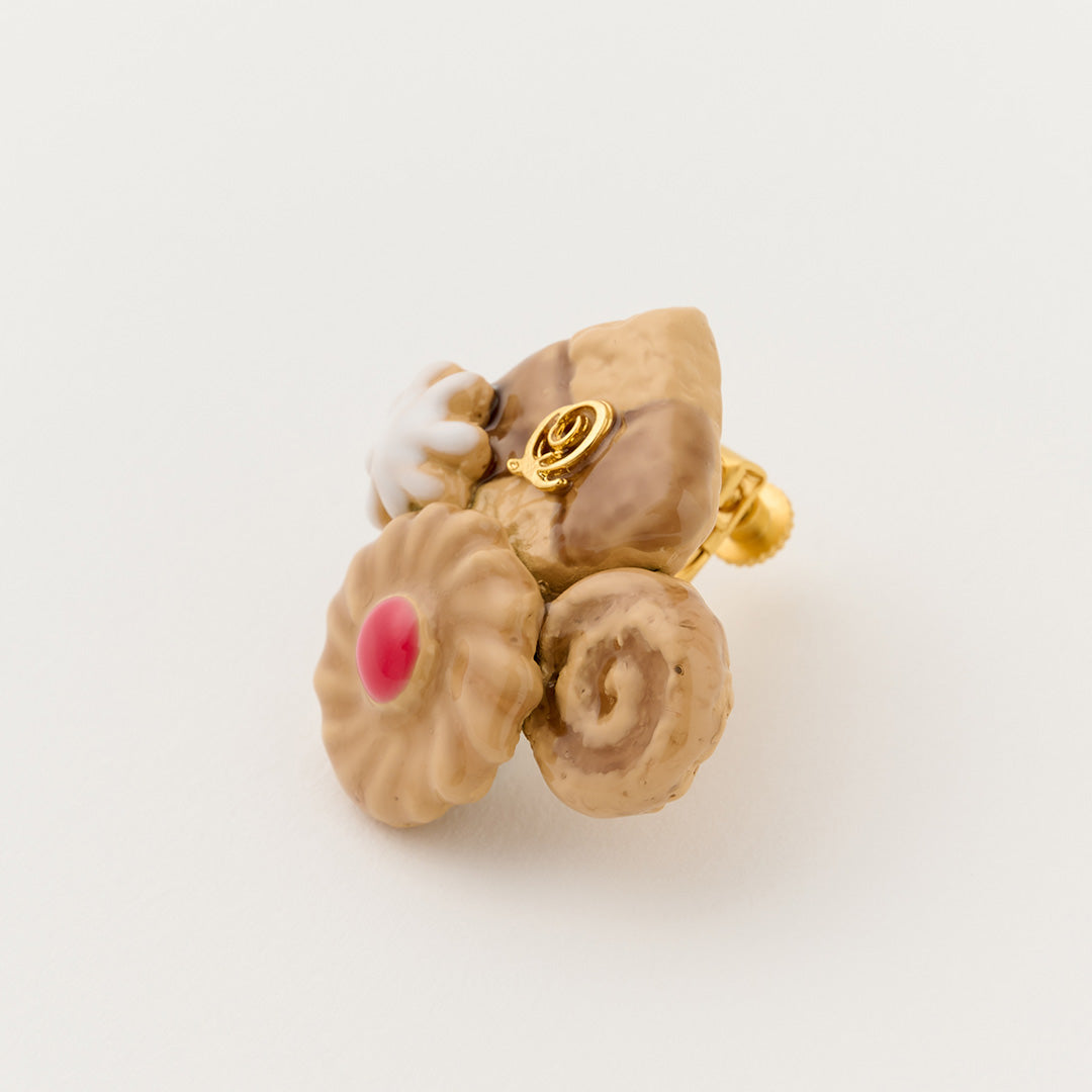 This gorgeous and eye-catching clip-on earring is decorated with a wide variety of cookies, including jam cookie and icebox cookie.