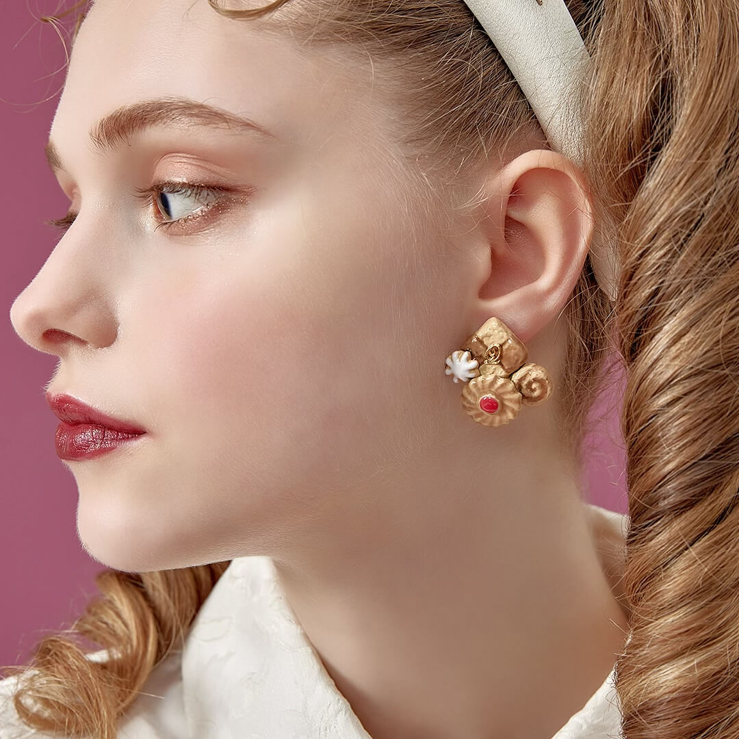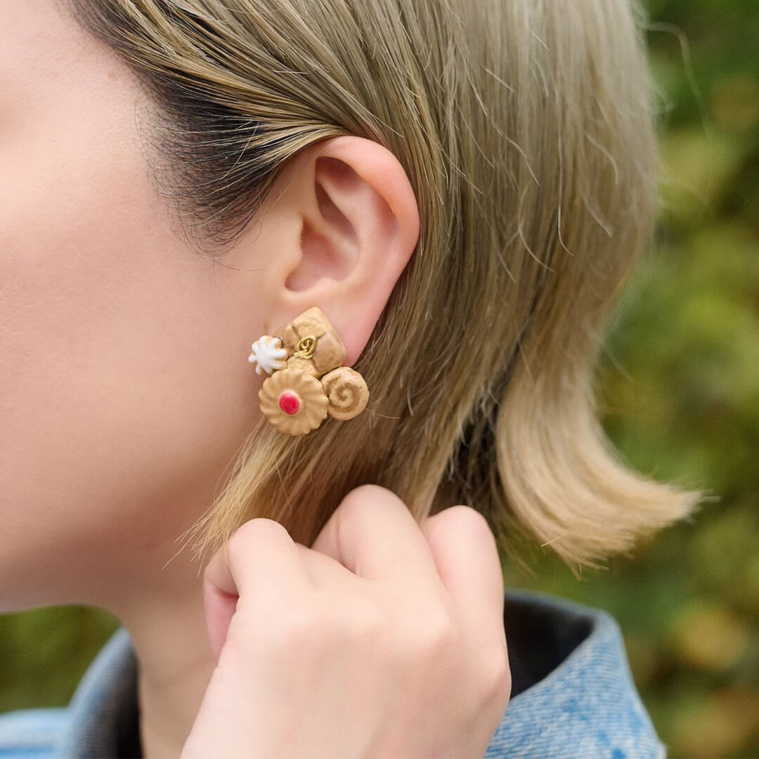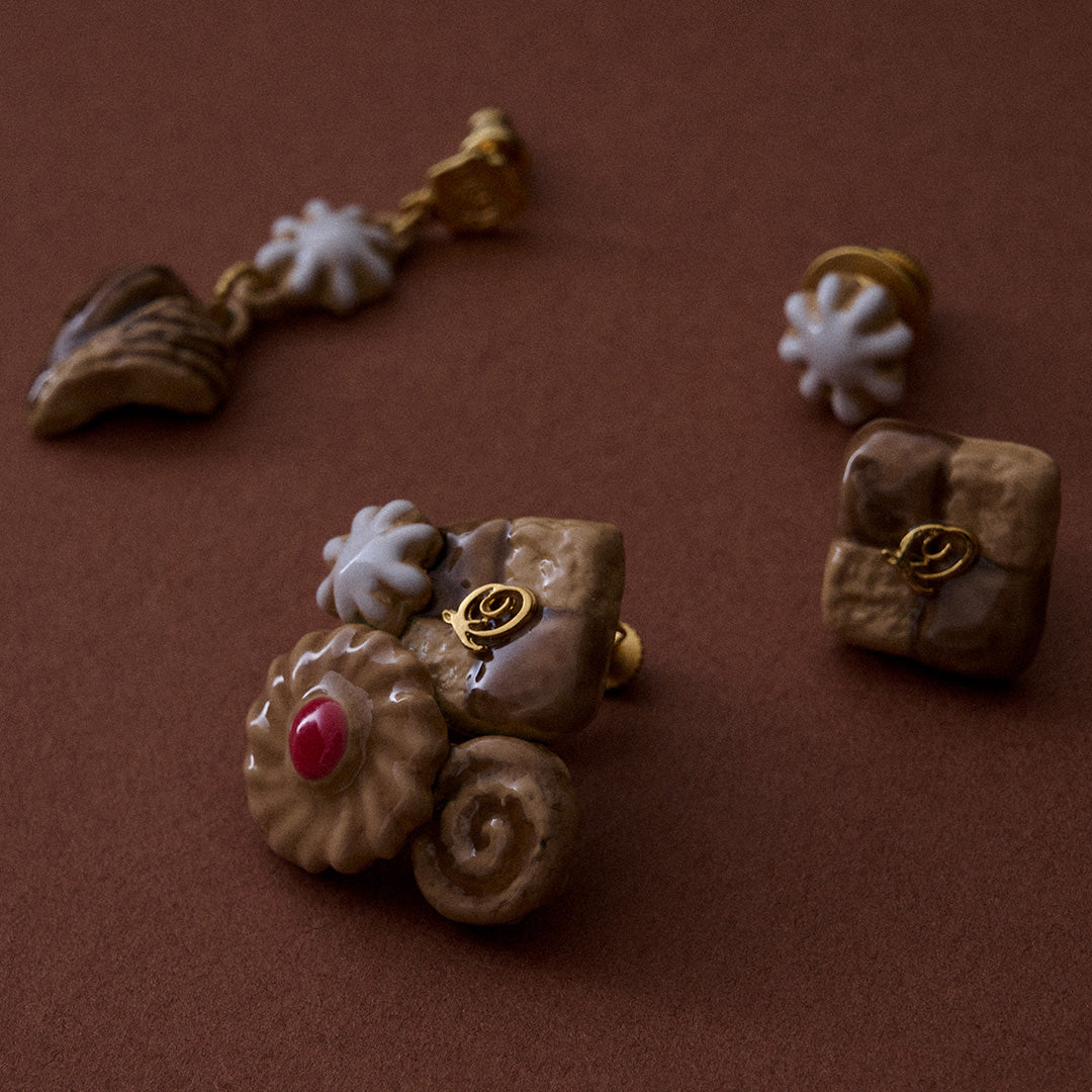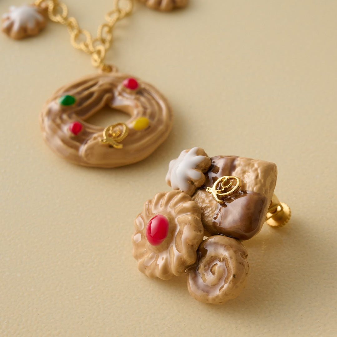 This gorgeous and eye-catching clip-on earring is decorated with a wide variety of cookies, including jam cookie and icebox cookie.