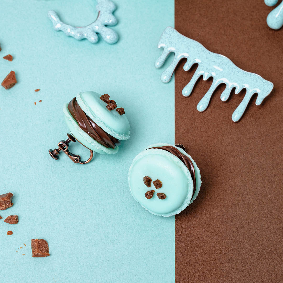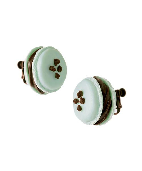 Mint Chocolate Petit Macaron Clip-On Earrings (Pair)【Japan Jewelry】