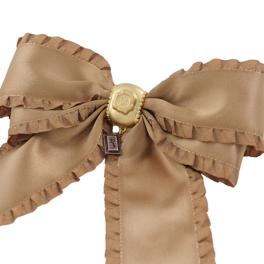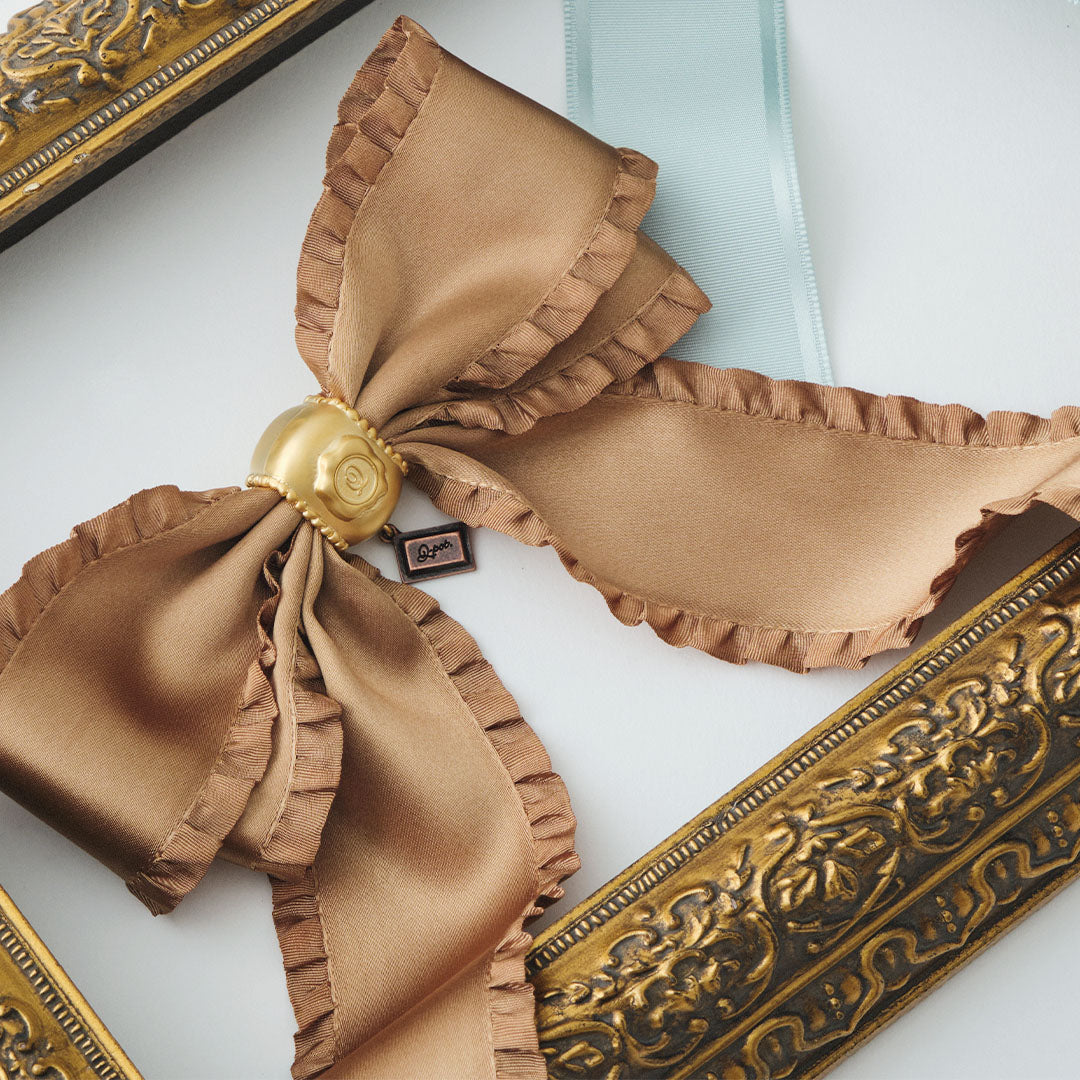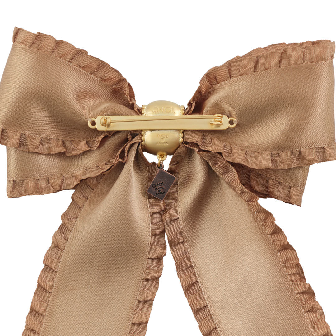 Frilled Satin Ribbon Chocolate Brooch (Brown Gold)【Japan Jewelry】