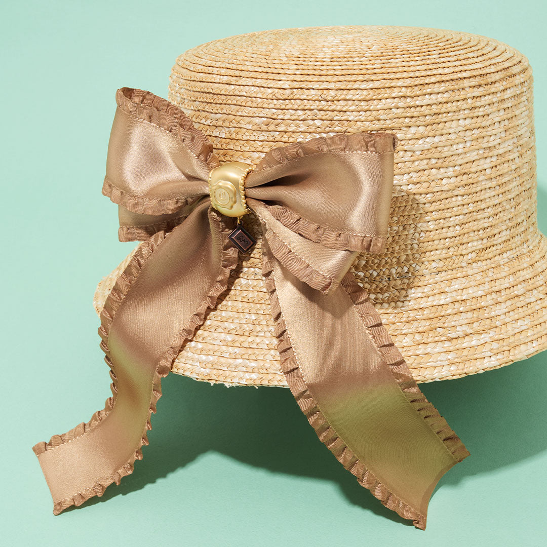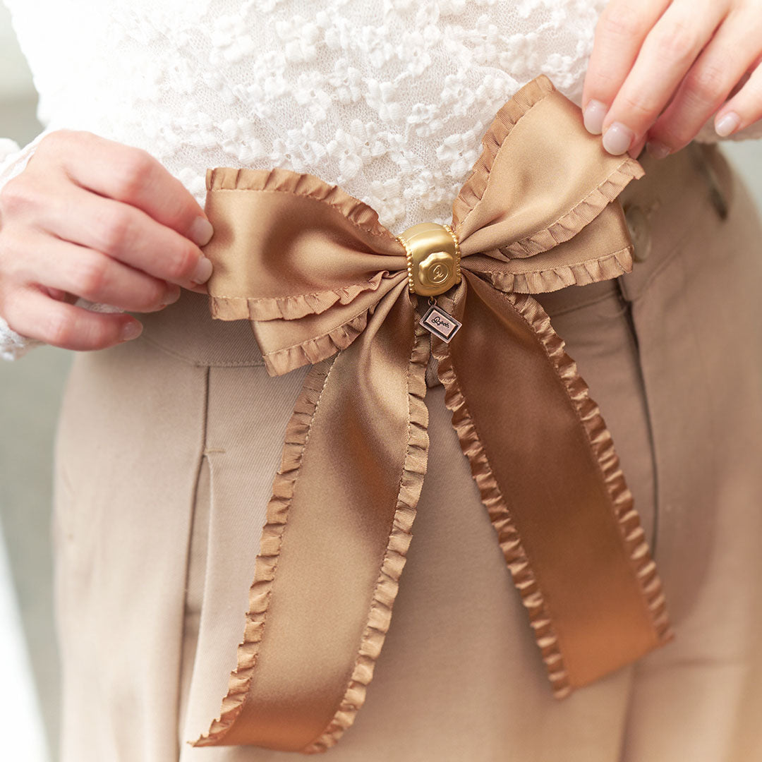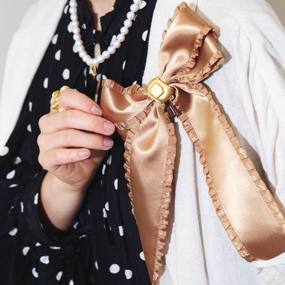 Frilled Satin Ribbon Chocolate Brooch (Brown Gold)【Japan Jewelry】