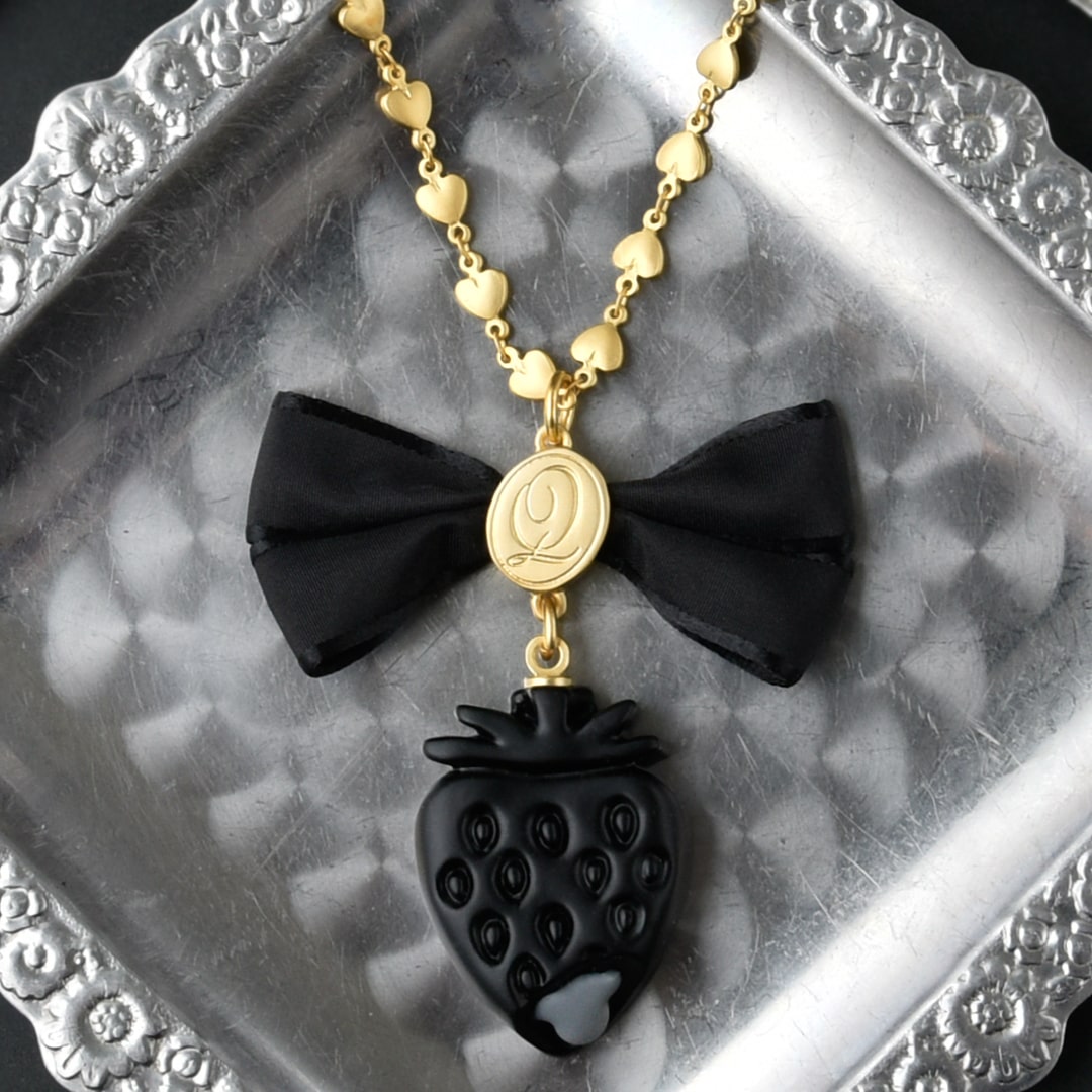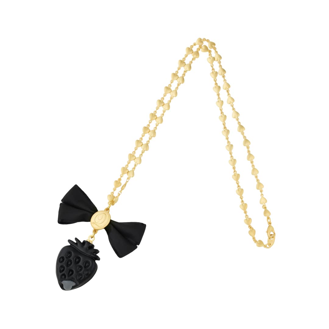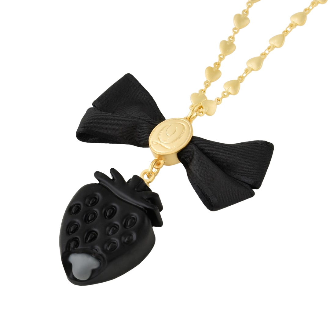 Strawberry Ganache Ribbon Necklace (Black)【Japan Jewelry】