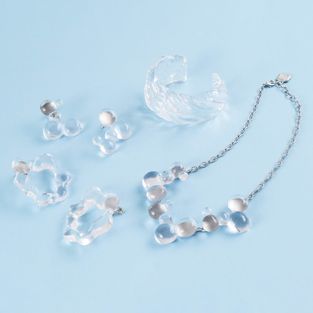 Refraction of clear pale light, water bubbles that flickers and disappear for a short time. A fantastic jewelry collection that is ephemeral and silence like the water bubbles.
