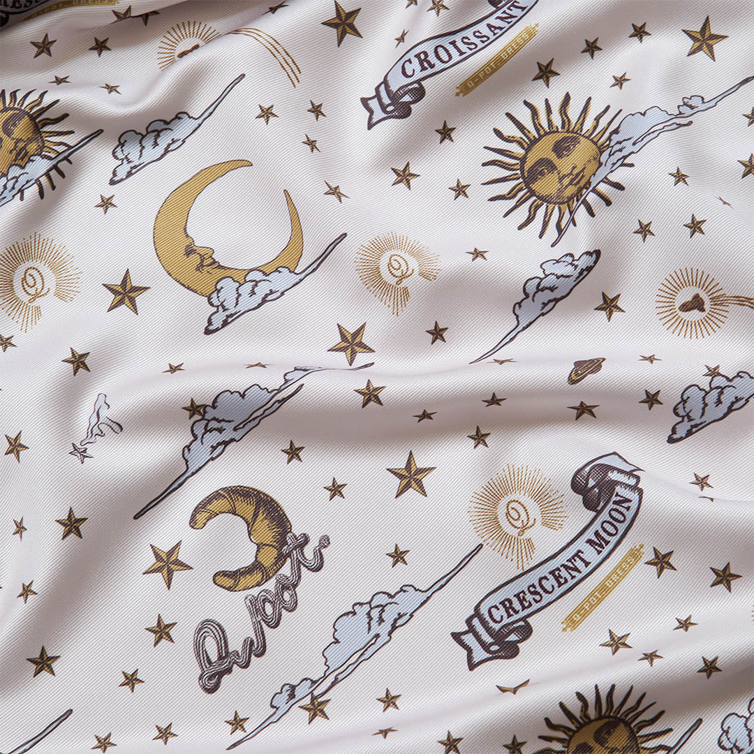 As the sun begins to rise, trading places with the moon, golden dough awakens in the kitchen. From the still-warm oven, a croissant gazes up at the sky and dreams: “Ah… if only I could one day become like the moon, quietly resting deep in the star-filled universe.”