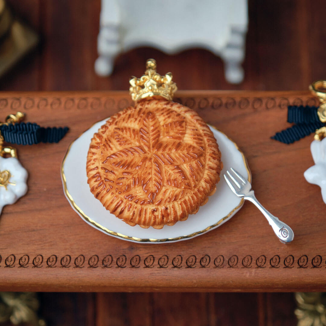 Galette des Rois, also known as "King Cake", is a traditional French confection. The one who discover the feve, a tiny charm buried inside one of the slices becomes "king for a day" and receives blessings from those around them and it is said that happiness will come during the year.
