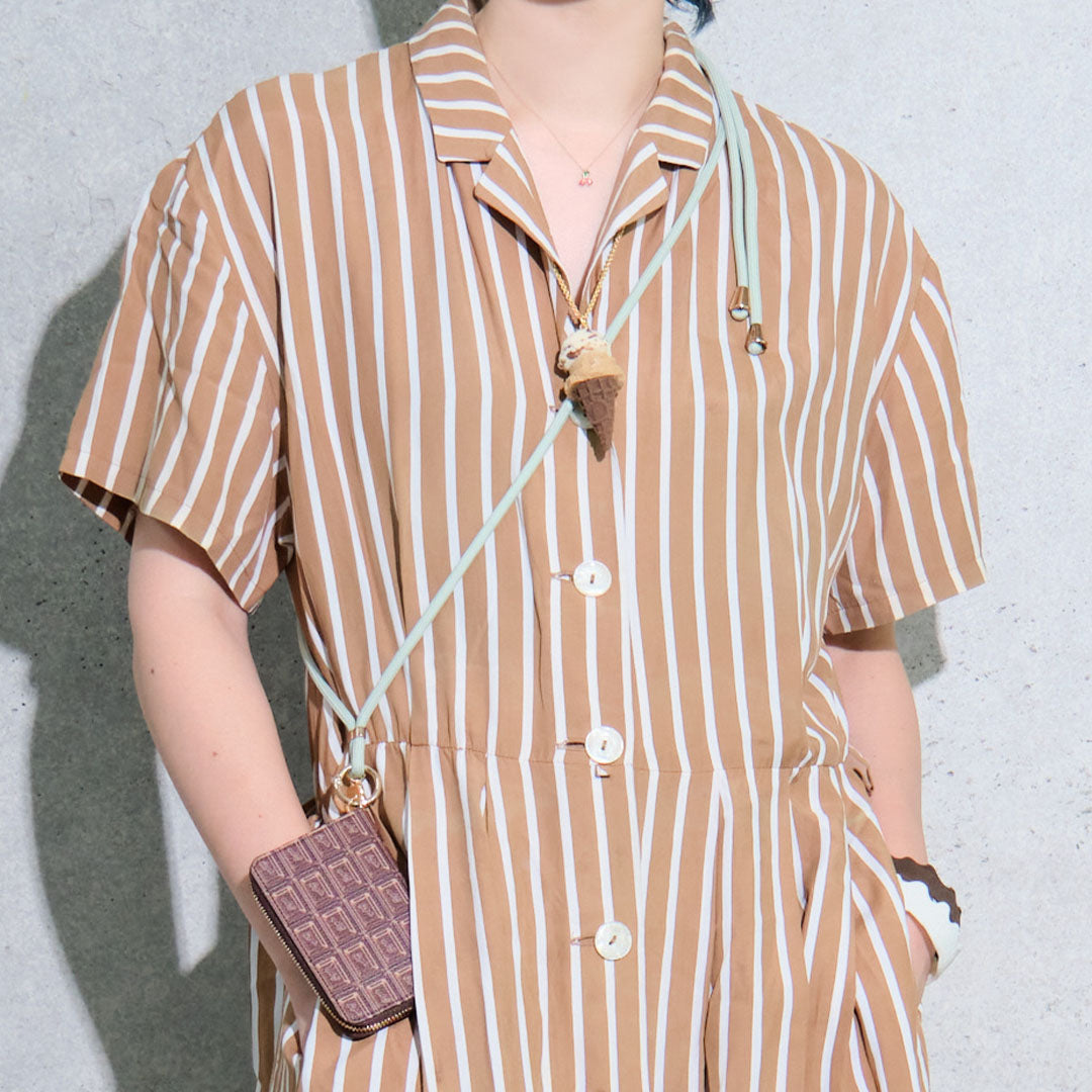 The 50's double ice cream with colorful flavors is just like a pop art! By wearing it, the communication will expand!