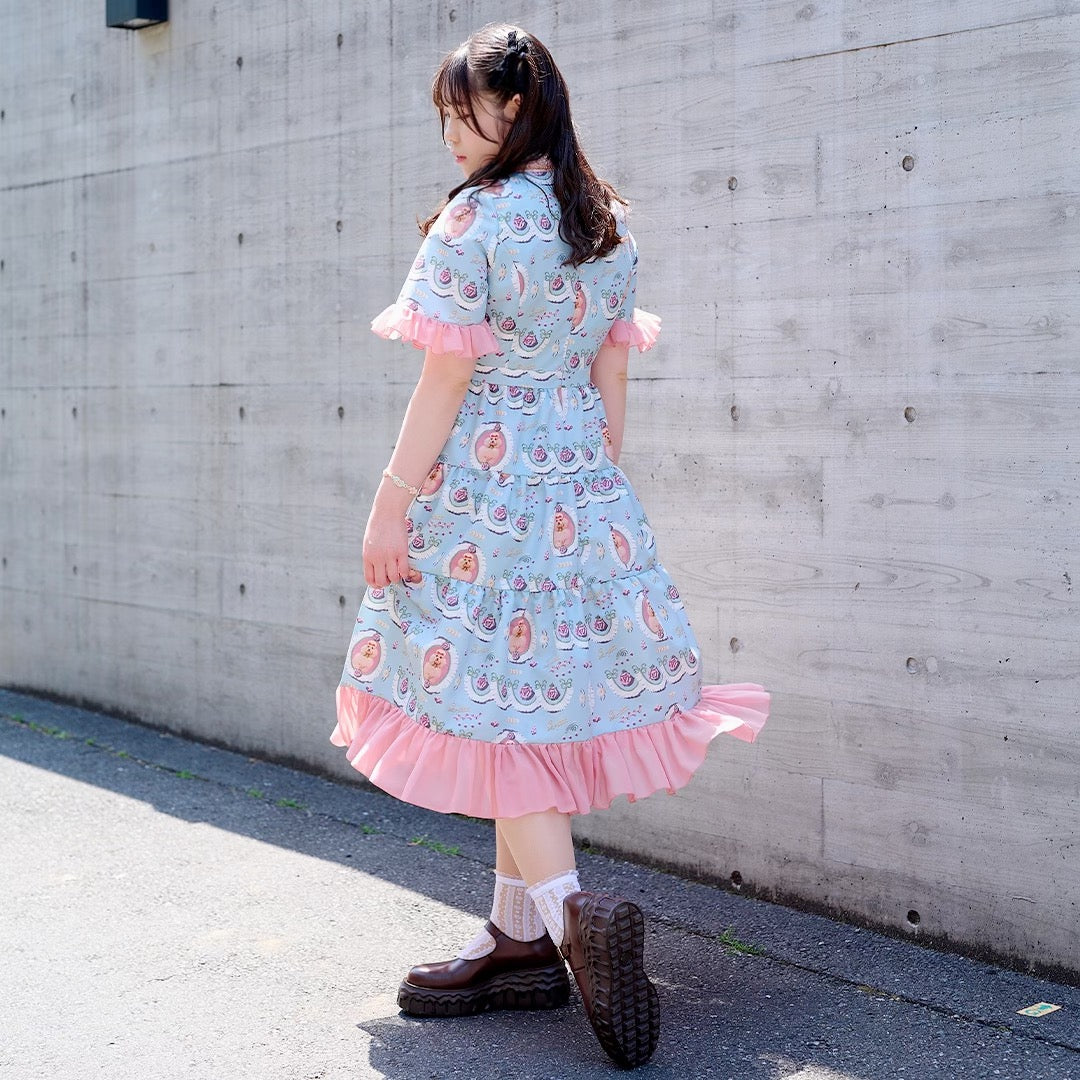 Poodle Cake Bell Sleeve Dress (Mint)【Japan Jewelry】