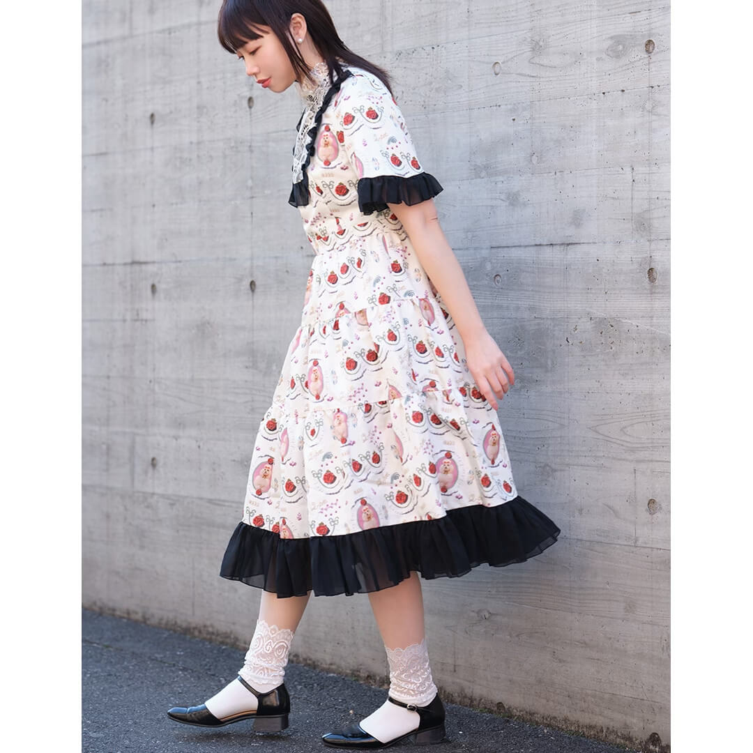 Poodle Cake Bell Sleeve Dress (White)【Japan Jewelry】