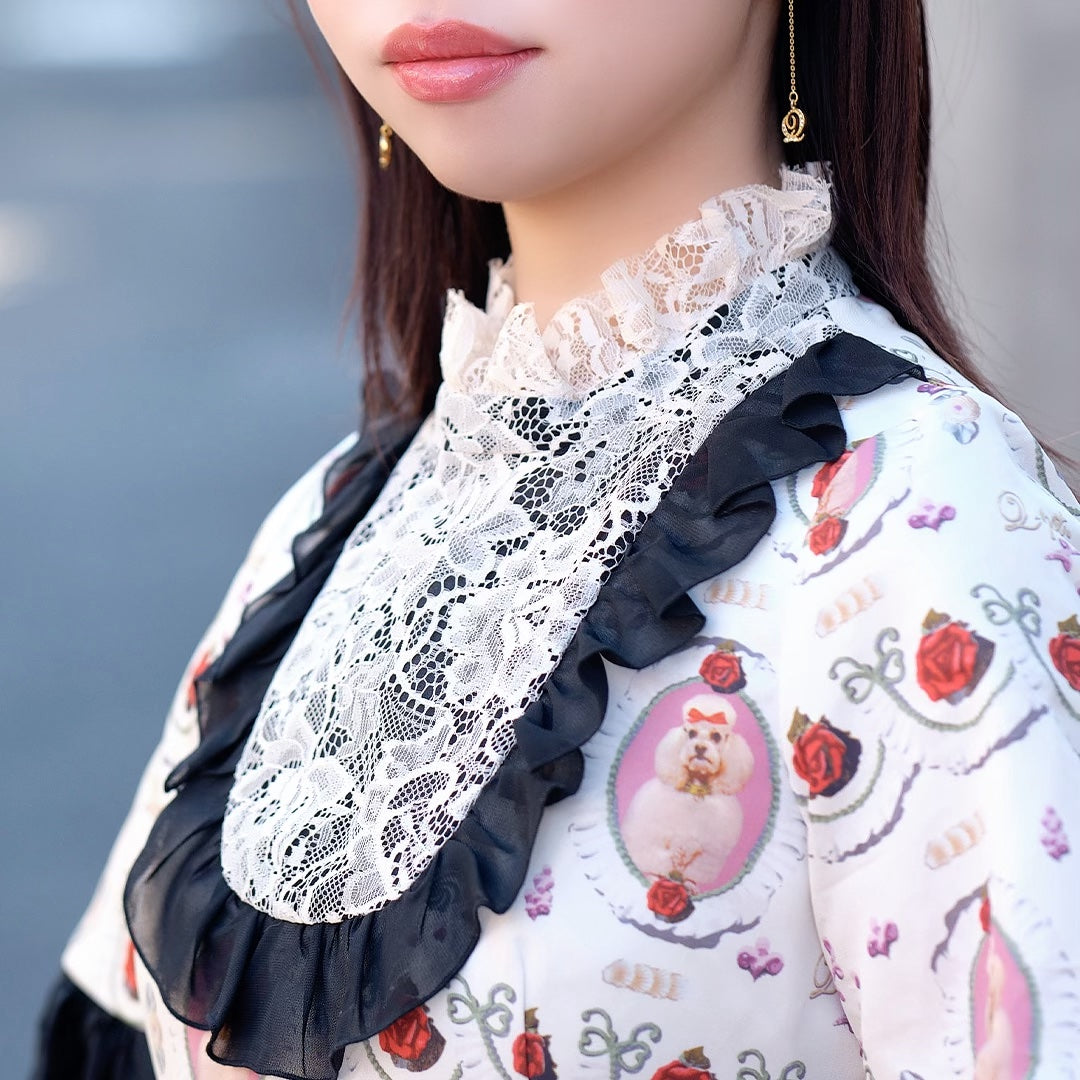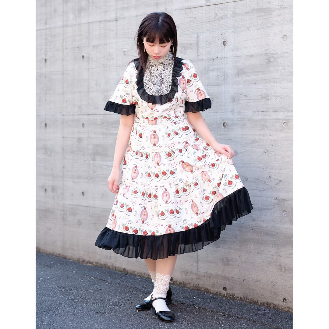 Dress: Polyester 100% Lining, Collar: Polyester 65%, Cotton 35% Lace, Frill: Polyester 100% Others: Fastener / Spring hook |