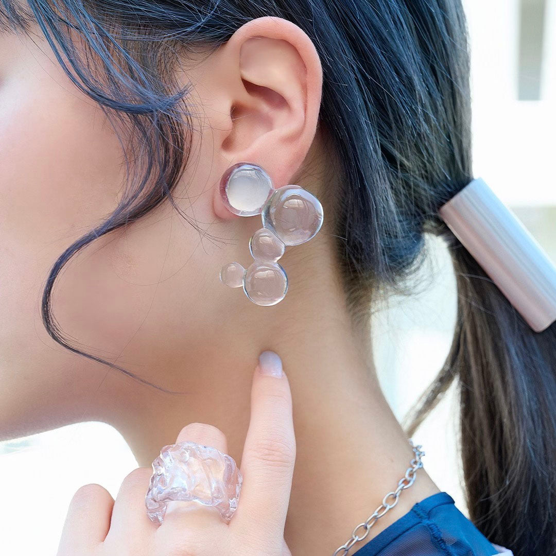 The bubbles clip-on earrings that reflects light from clear bubbles of different sizes finely express the ephemeral bubbles.