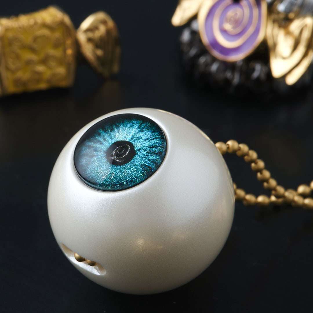 Eyes are the window to the soul. The eyeball necklace has an elegant pearl coating.