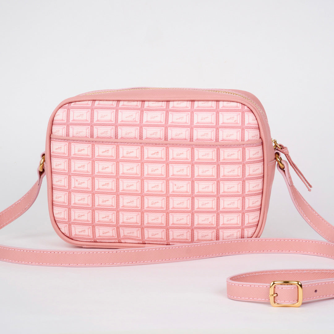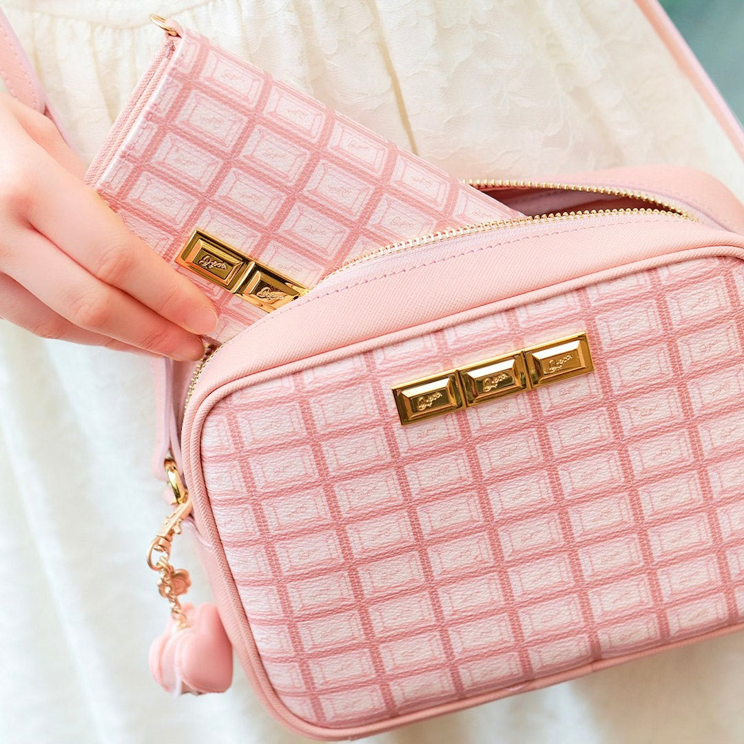 Inspired by a chocolate bar, this crossbody bag blends cuteness with unexpected capacity. Made in Japan from water-resistant PVC-coated canvas with genuine leather accents, it fits more than you’d expect — including a slim water bottle or long wallet.